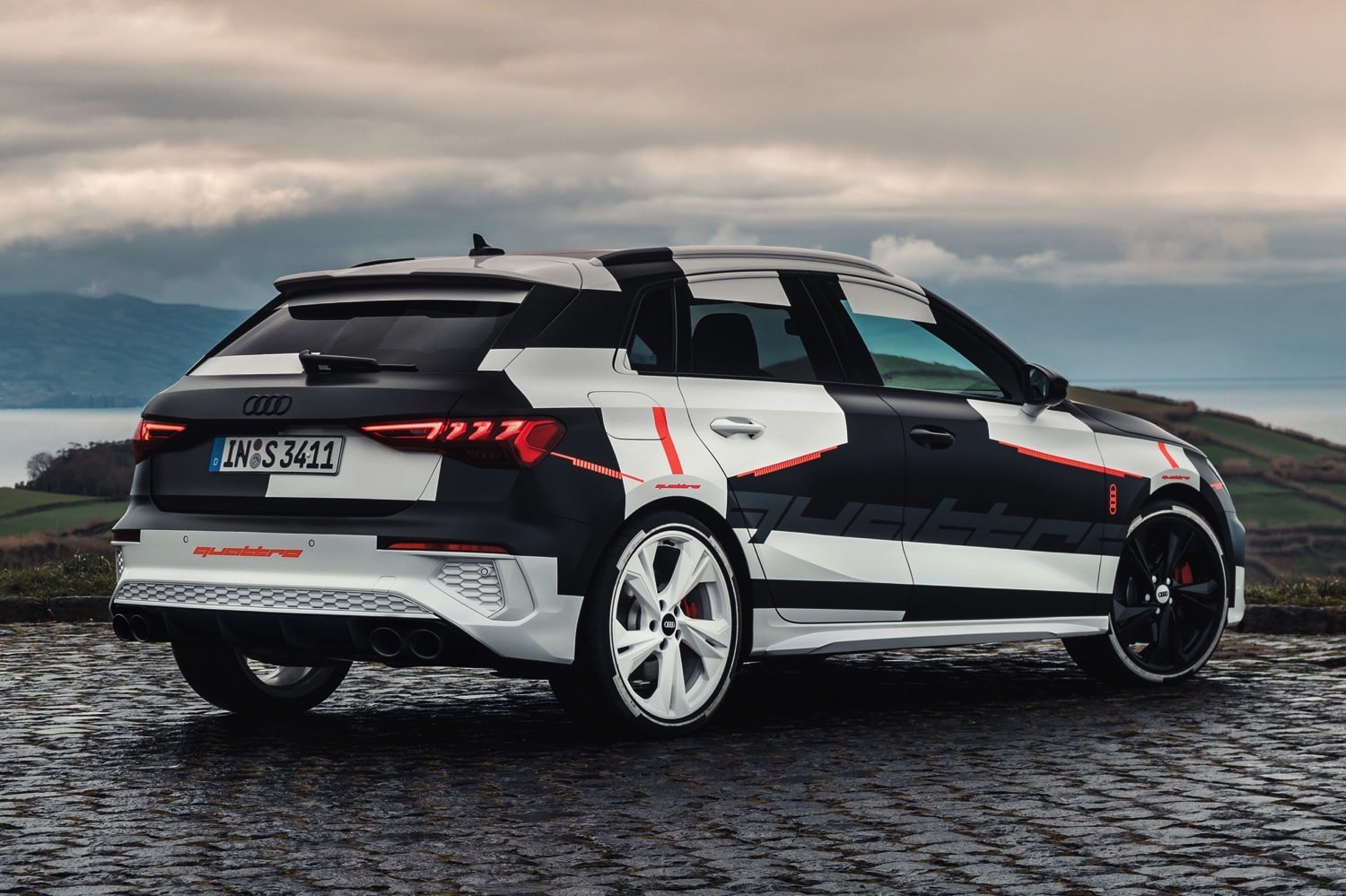 La marque allemande n’a pas hésité à donner un avant-goût de l’auto, avec des images d’un modèle de pré-série, photographié sur l’île de São Miguel dans l’archipel des Açores. Le véhicule arbore une tenue de camouflage, mais en se concentrant un peu, on constate que ce n’est qu’une seconde peau : les formes définitives sont bien visibles.