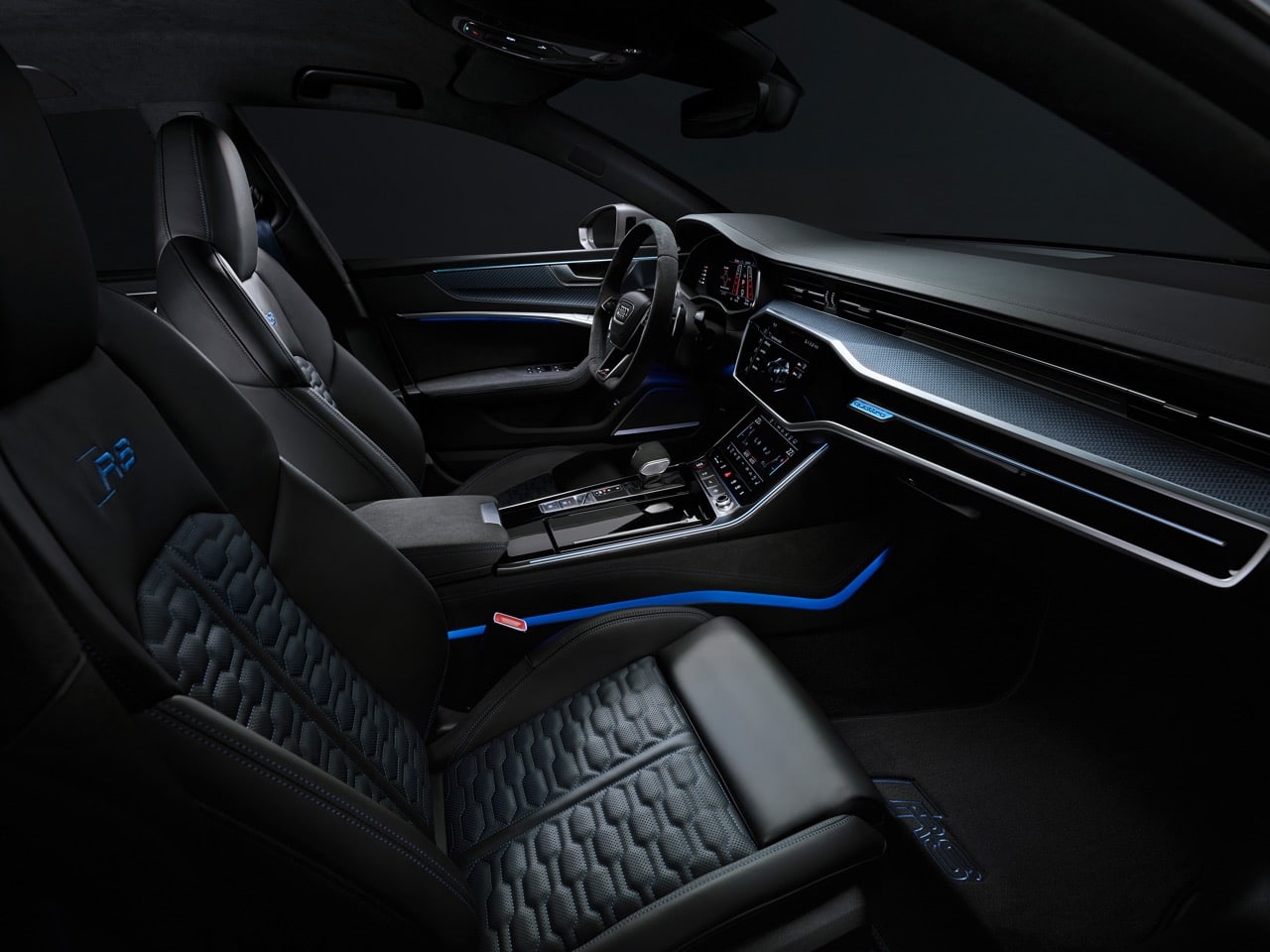 Audi rend également l’aspect de ces RS 6 et RS 7 Performance plus exclusif. À l’extérieur, on note l’arrivée de nouvelles teintes, le bleu Ascari métallisé et mat ainsi que l’argent Dew Silver mat sont disponibles. Des éléments extérieurs RS de série en gris mat comme les rétroviseurs extérieurs, le spoiler avant, les volets latéraux avant, les inserts de bas de caisse, les rails de toit et les garnitures des vitres latérales et du diffuseur arrière. Ces éléments peuvent être carbone mat noir avec un pack design optionnel qui comprend aussi les garnitures de fenêtres et les rails de toit noir. Les anneaux du logo et les sigles du modèle peuvent aussi en option être en chrome ou noir.