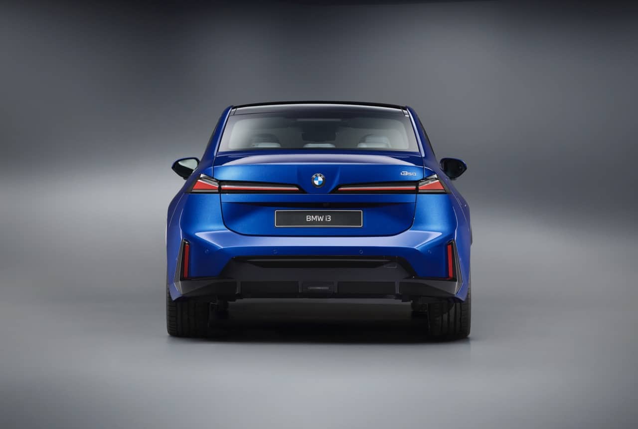 Avec 4,76 m de longueur, 1,86 m de largeur et 1,48 m de hauteur, la BMW i3 adopte des dimensions proches de la Série 3, tout en affichant un empattement de 2,90 m. La berline conserve l’équilibre classique des proportions tout en modernisant son style. L’arrière, court et surélevé, contraste avec de longs feux horizontaux, tandis que l’avant se distingue par une signature lumineuse élargie qui remplace la traditionnelle double calandre.