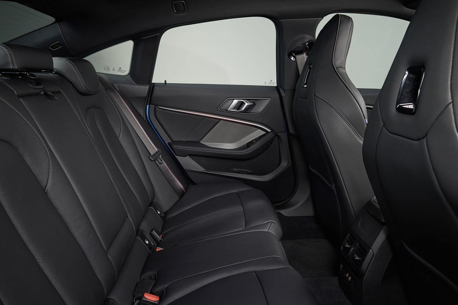 Bonne surprise en ouvrant les portes : on découvre que celles-ci n’ont pas d’encadrement, ce qui renforce ici l’aspect coupé. La planche de bord est reprise à la Série 1. On retrouve les originales baguettes décoratives qui intègrent un éclairage façon fibres. En série, l’écran tactile mesure 8,8 pouces. En haut de gamme, c’est 10,25 pouces. Le dessin extérieur est trompeur : il n’y a pas de hayon pour accéder au coffre, mais une malle. La capacité est de 430 litres, ce qui est 50 litres de plus que la Série 1. C’est en revanche bien moins que la CLA, qui est à 505 litres. Mais cette dernière est plus longue, avec 4,69 mètres, contre 4,53 mètres pour la Série 2. La banquette 40/20/40 est en série.