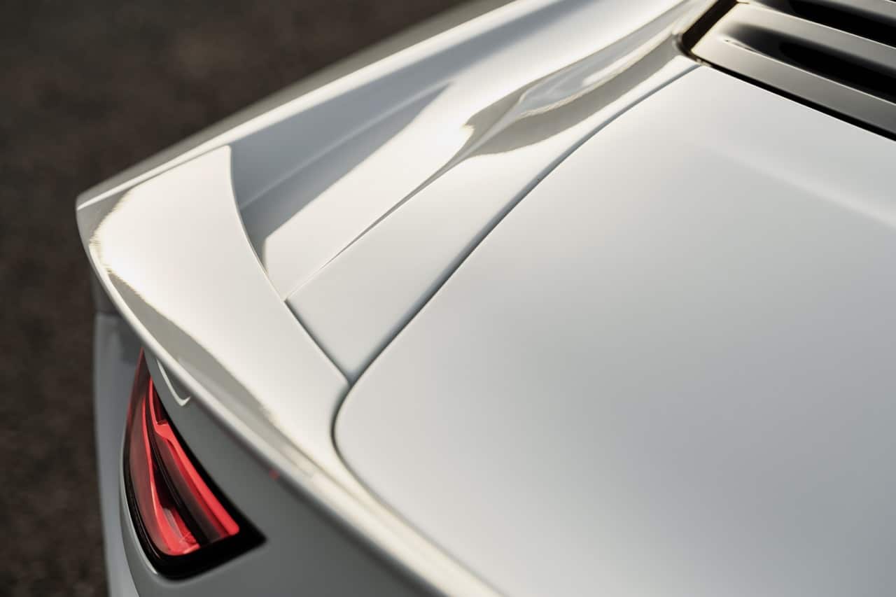 La particularité d’une Alpine A110 revisitée par Ravage est la carrosserie qui s’éloigne largement de la voiture de série. Effectivement la Ravage Gr4 dispose d’une carrosserie entièrement faite en carbone sous vide fabriquée en France par un artisan. On remarque aussi des portes Cibié en carbone redessinées, un becquet canard intégré, des passages de roues en kevlar, des jantes forgées OZ ainsi qu’une grille d’aération arrière en aluminium anodisée et découpée au laser.