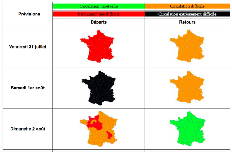Bison Futé sort le drapeau noir pour le samedi 1er août, jour du traditionnel chassé-croisé entre juilletistes et aoûtiens. Ce sera rouge (foncé) ce vendredi.