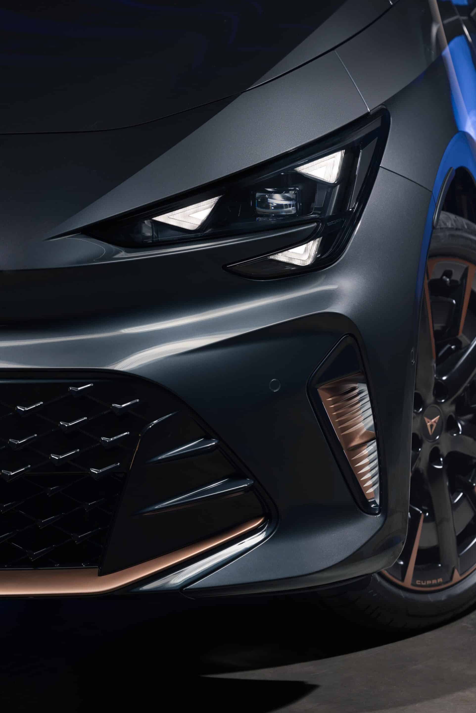 Extérieurement, les changements restent mesurés, mais ils contribuent à renforcer le caractère sportif du modèle. Cupra retravaille notamment la face avant avec une interprétation plus marquée du « Shark Nose », un bouclier plus anguleux et des lignes plus prononcées autour du logo cuivré de la marque. Les projecteurs adoptent également un nouveau dessin qui modernise l’identité visuelle de la compacte.