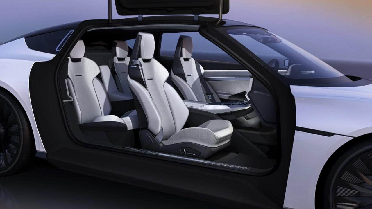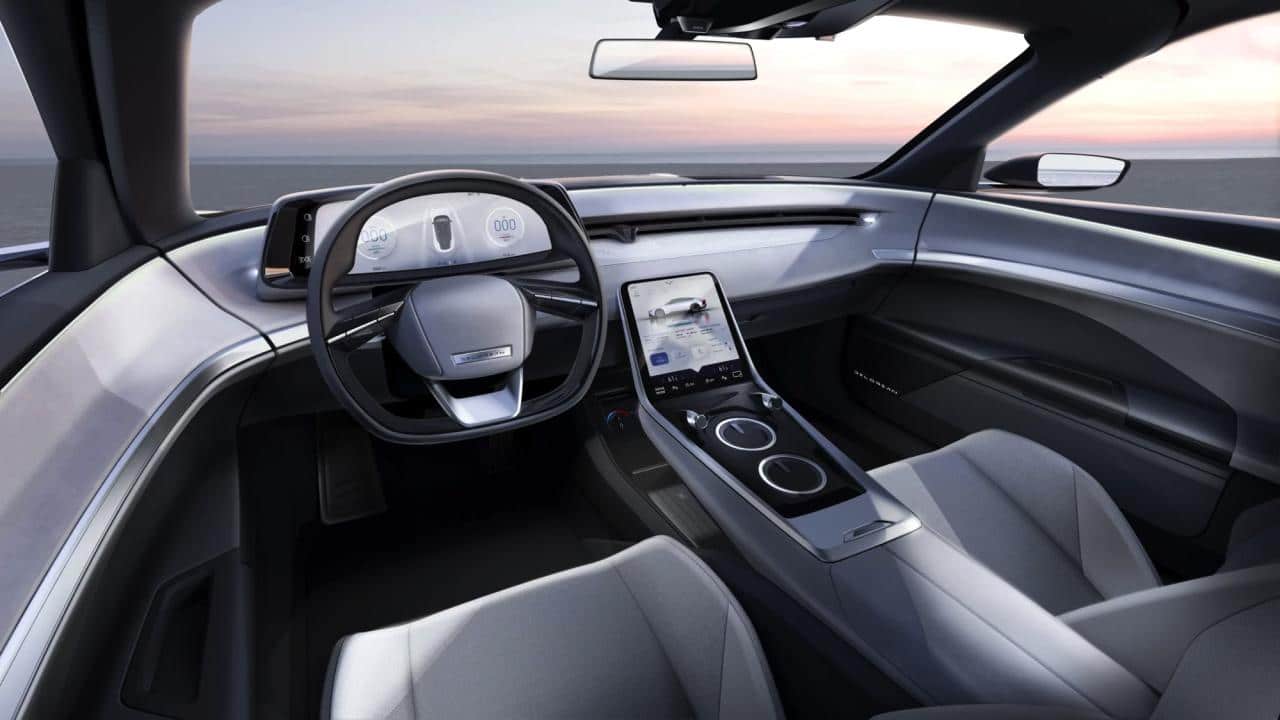 Cette Delorean Alpha 5 affiche une longueur de 5 mètres mais aussi une largeur de 2m04 et une hauteur de 1m14. C’est bien plus grand que les 4,21 mètres de la DMC-12 mais cela permet d’y glisser une rangée de sièges supplémentaire faisant de l’Alpha 5 une GT 4 places. L’habitacle se trouve futuriste avec des combinés d’instruments numériques et un grand écran tactile central.