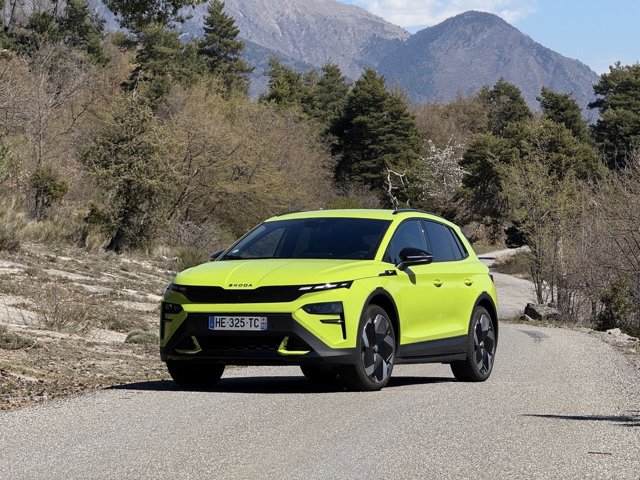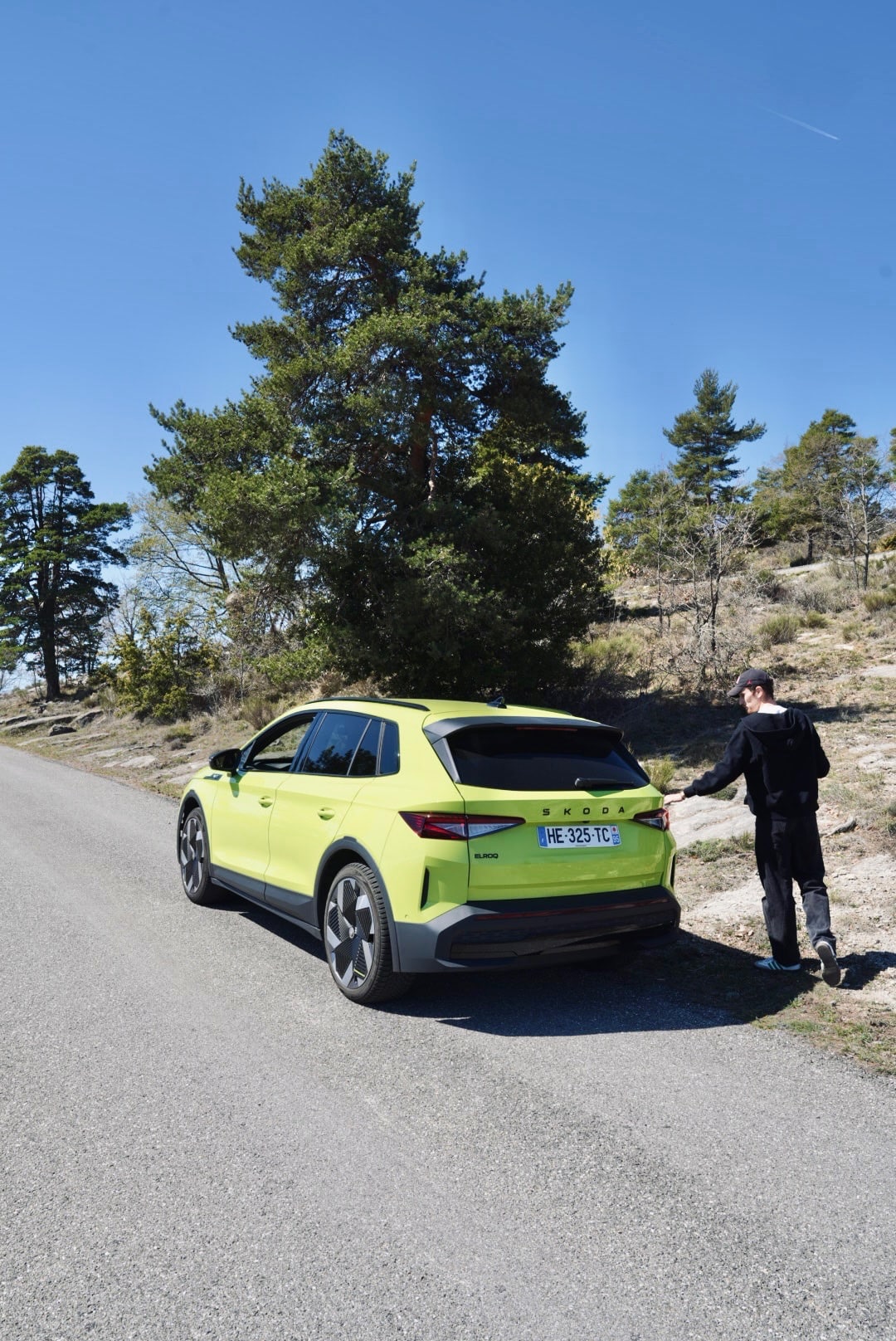 L’amortissement piloté DCC, livré de série, permet de moduler cette rigidité. En mode confort, le filtrage s’améliore, mais sans atteindre la souplesse d’un Elroq classique. En revanche, en conduite soutenue, le comportement se montre rassurant. La motricité est excellente, les mouvements de caisse bien contenus et la stabilité à haute vitesse remarquable. Le revers de la médaille est une direction qui manque de ressenti et un freinage dont la régularité n’est pas toujours optimale, un défaut assez répandu chez les électriques.