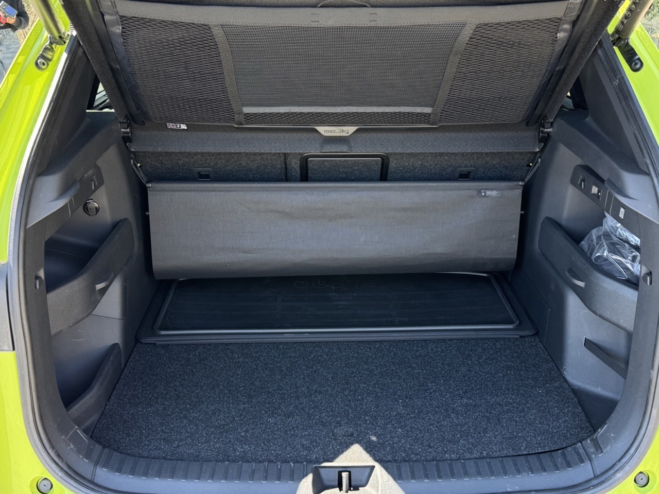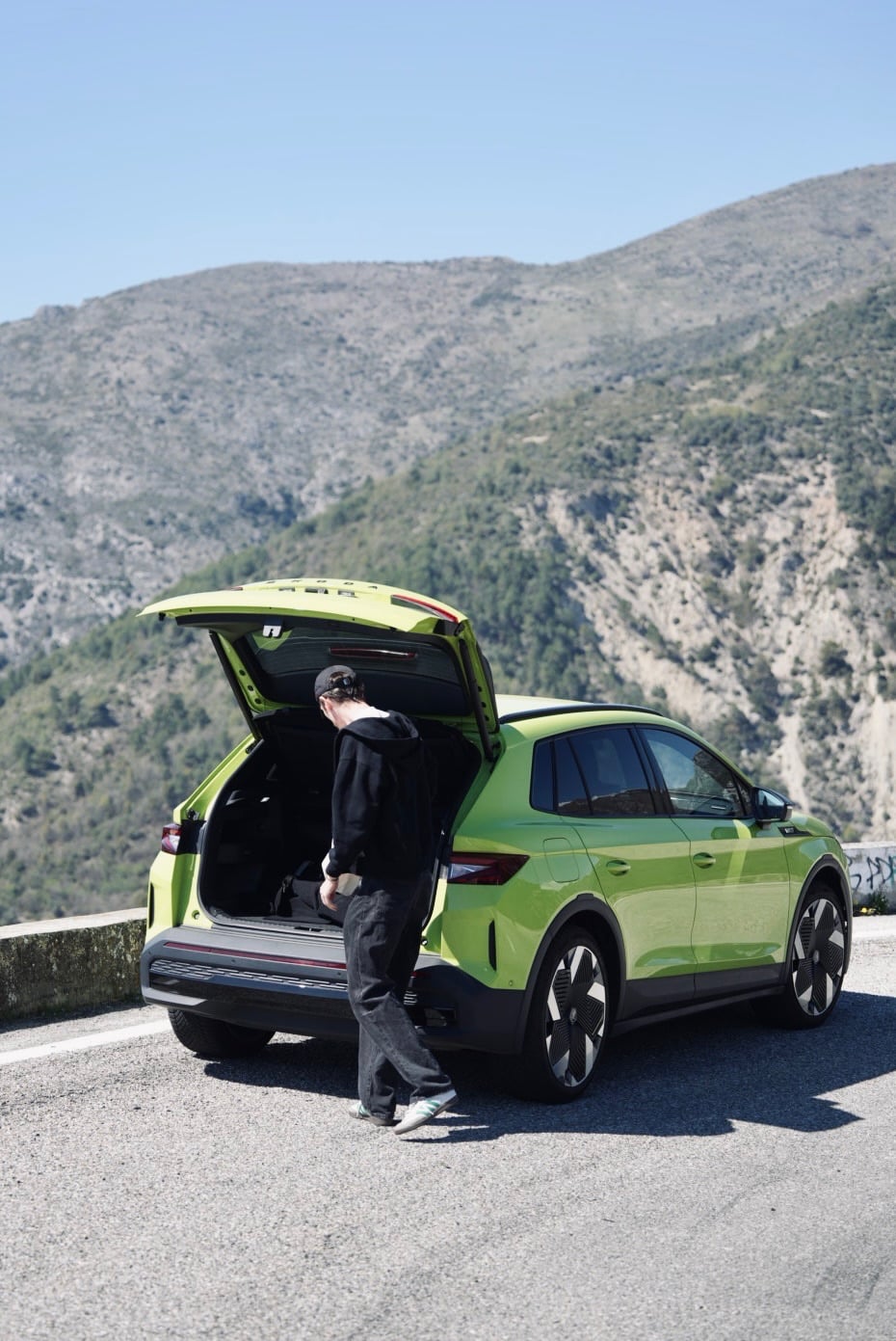 Mais c’est surtout l’habitabilité qui fait la force de ce SUV. Grâce à un empattement identique à celui de l’Enyaq, l’espace aux places arrière est particulièrement généreux. Les passagers bénéficient d’une belle garde au toit et d’une largeur confortable aux épaules. Même avec des sièges avant imposants, l’espace pour les jambes reste très correct. Le coffre, quant à lui, conserve un volume de 470 litres, extensible à 1 580 litres une fois la banquette rabattue, ce qui est suffisant pour installer un vélo entier sans démonter les roues. De nombreux rangements, typiques de la marque, facilitent la vie quotidienne, comme le filet sous le cache bagage permettant de ranger les câbles de recharge. On vous à déjà dit que Skoda était « Simply Clever »