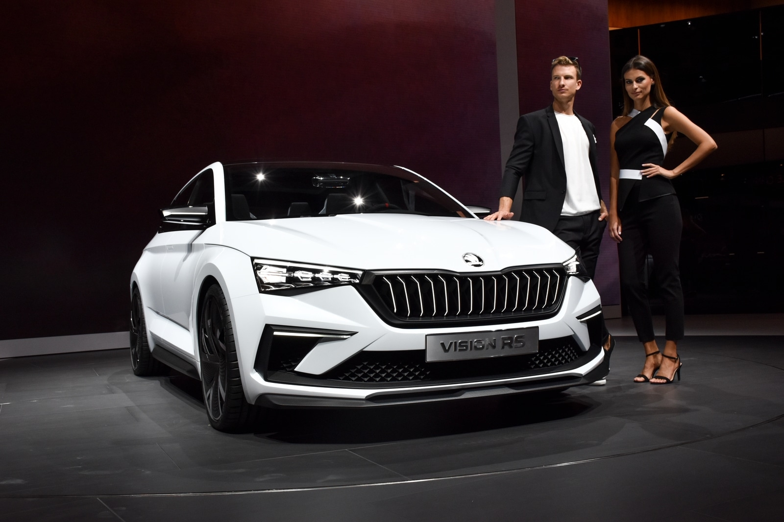 Terminons avec une proposition bien plus proche de la réalité. Selon Skoda, le sport à court terme sera hybride. Du coup, on retrouve logiquement un bloc essence couplé à un moteur électrique sous le capot de la Vision RS. La puissance combinée du 1.5 turbo et de l’unité électrique atteint ici 245 ch, de quoi permettre à la compacte d’atteindre les 100 km/h en 7,1 s et de pointer à 210 km/h. Si la face avant n’est pas sans rappeler l’ADN de la marque, la lunette arrière avec l’inscription Skoda fait tout de même bien penser à une Volvo V40. Gros avantage de ce mode de propulsion, le rejet de CO2 n’est que de 33 g par km ! La Vision RS ne se voit donc pas pénalisée par un malus, et ça, c’est toujours bon à prendre.