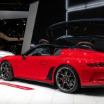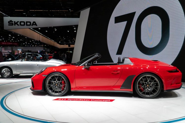 Porsche a mis les petits plats dans les grands pour ses 70 ans en dévoilant un concept de 911 Speedster basé sur la 991 GT3 phase 2. En deux mots : c’est sublime. Le soin apporté à la réalisation est juste hallucinant et le regard est accroché par une multitude de petits détails comme les rétroviseurs ou encore le bouchon de réservoir situé au milieu du coffre avant. Le flat-6 atmo de la pistarde (+ de 500 ch annoncés) ainsi que son châssis finement mis au point sont bien évidemment de la partie et la boîte de vitesses est manuelle, pour le plus grand bonheur des puristes. La production est déjà confirmée pour ce qui sera sans doute l’un des plus gros collectors de sa génération, avec tous les travers que cela comprend.