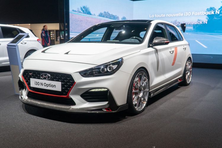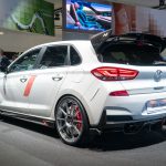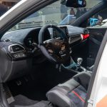 A ceux qui trouvent l’i30 N un peu trop sage visuellement parlant, Hyundai répond avec un méchant kit carrosserie qui transforme la compacte coréenne en Goldorak. Lame avant, bas de caisse, diffuseur et aileron démesuré se chargent de muscler la ligne, le tout réalisé en fibre de carbone avec une qualité de finition sans reproches. Les jantes polies directement inspirées de la compétition ne sont pas en reste alors que l’alcantara a littéralement envahit l’habitacle de l’i30. Deux sièges baquets fermes au possible mais ultra enveloppant sont aussi de la partie. Il n’est pas exclu que Hyundai se décide à proposer les différents éléments en option dans un futur proche, mais gardez en tête qu’en l’état, le coût de la transformation doublera quasiment le prix de la voiture. Le 4-cylindres turbo de 275 ch reste inchangé.
