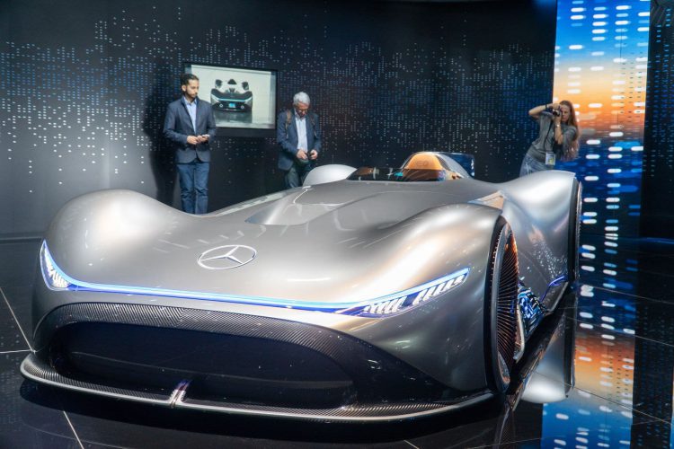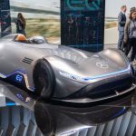Une monoplace élancée aux galbes généreux, voilà donc qui rappelle les fameuses flèches d’argent de Mercedes qui tournaient sur les anneaux de vitesse dans les années 30, 40 et 50. Le nouveau concept de la marque à l’étoile en reprend d’ailleurs le nom en y ajoutant le préfixe EQ, signe qu’il appartient à la gamme entièrement électrique du constructeur. Etude de style plus que véritable benchmark pour tester la réaction du public, l’EQ Silver Arrow n’en reste pas moins incroyable à contempler, tant la pureté de ses formes contraste avec la majorité de la production automobile actuelle. Aussi, la puissance annoncée de 750 ch et les 400 km d’autonomie ne seront sans doute jamais vérifiables. Quoiqu’il en soit, c’est une belle preuve que l’abandon progressif des moteurs thermique ne signera pas pour autant la mort des records de vitesse et de la déraison automobile.