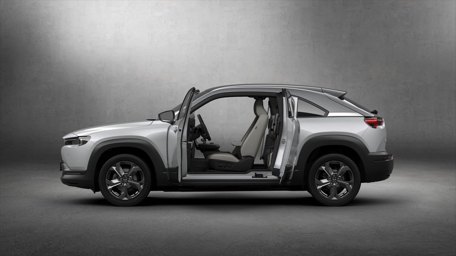 Le MX-30 est un SUV coupé compact, doté de portes antagonistes à l’arrière ! Il part avec un handicap : une trop petite batterie.
