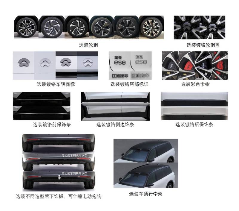 Le passage à l’homologation en Chine nous permet d’en apprendre plus sur les possibilités de configuration de l’ES8. On retrouve 6 choix de jantes, 4 couleurs de logos Nio, 2 couleurs de logo du modèle ou encore 4 couleurs pour les étriers de frein.
