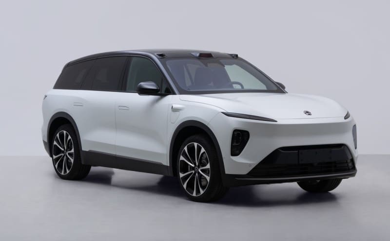 Ces clichés font cependant notre bonheur car ils permettent de bien observer le nouvel Nio ES8. On distingue un design épuré et sans fioriture. La face avant adopte des optiques fins tandis que le pare-chocs à 3 ouvertures pour refroidir sa mécanique électrique et inclure d’autres accessoires. On retrouve sur le toit ce qui ressemble à des cornes. Il s’agit en réalité de 2 capteurs et 1 lidar pour la conduite autonome nommé Nio Pilot. On distingue aussi deux caméras sur les ailes avant et une caméra à l’arrière. Pour commander l’ensemble, 4 processeurs Nvidia Orin X sont facturés 97€/mois. Il paraît donc obligatoire de payer un abonnement supplémentaire pour profiter de l’équipement conduit autonome. Une politique proche de celle de BMW proposant des options par abonnement mensuel.