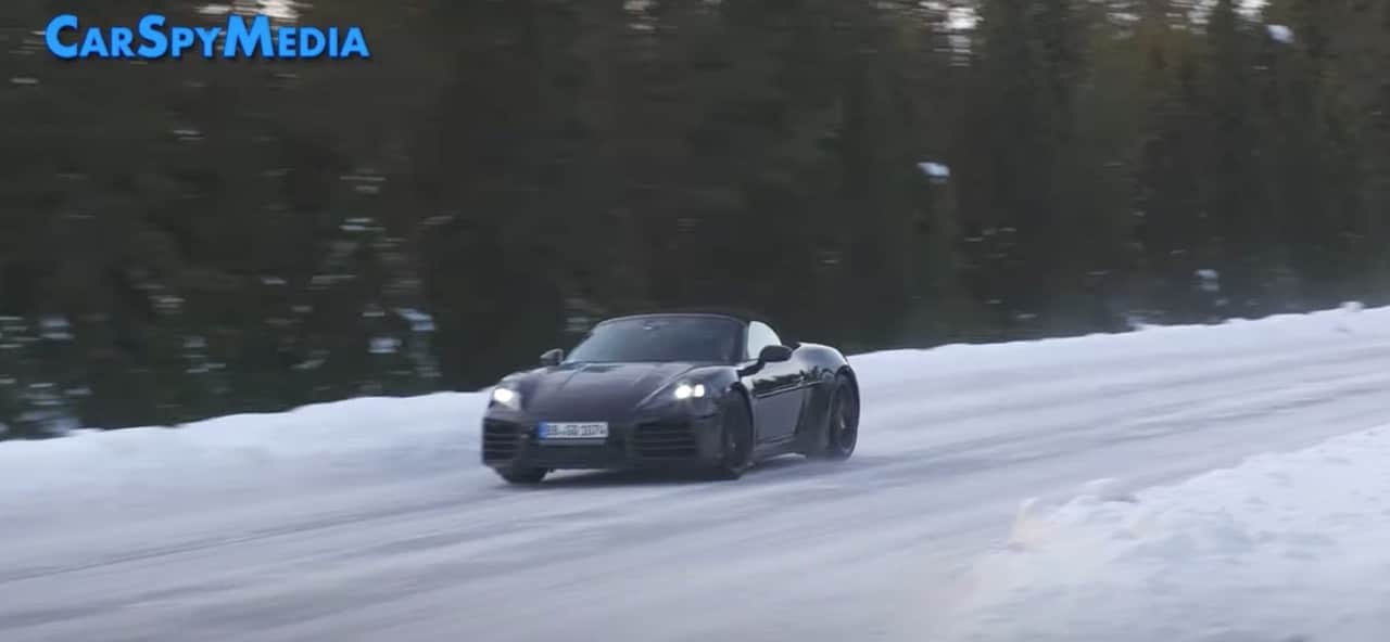 La vidéo de CarSpyMedia permet d’apprécier le Porsche Boxster électrique en essai dans un des pays nordiques, certainement la Suède. Porsche a souhaité emmener le roadster dans cette région du globe non pas pour profiter d’une conduite cheveux au vent mais plutôt de conditions météorologiques rudes. En effet, elles mettent à rude épreuve les batteries et l’autonomie d’un véhicule électrique, il s’agit donc de la parfaite occasion pour essayer sa fiabilité et ses performances en toute occasion.