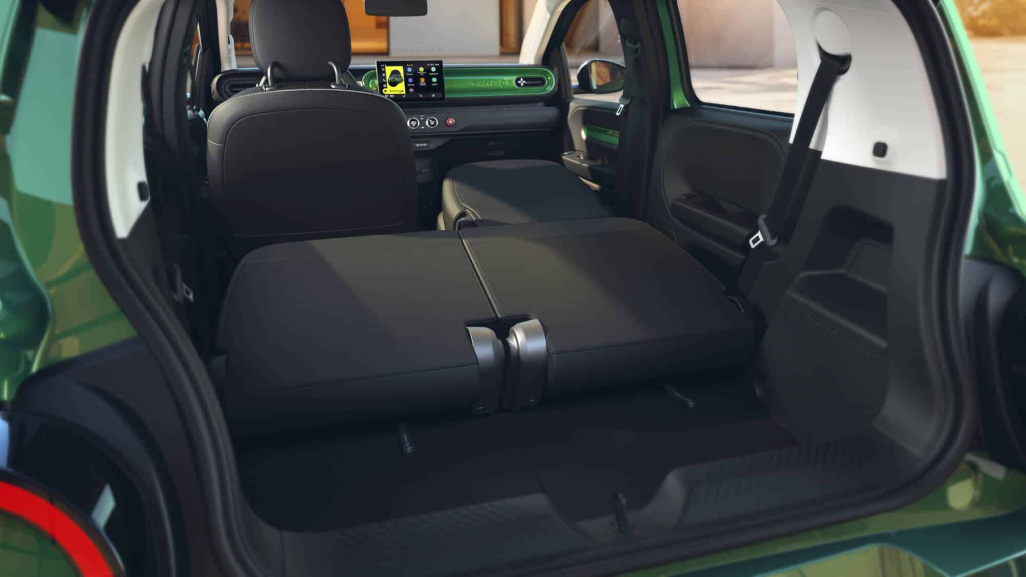 Certes, les places arrière ne sont pas idéales pour les grands gabarits en raison de la hauteur du plancher liée à la batterie, mais la Twingo reste très logeable pour son gabarit. L’intérieur multiplie les rangements ouverts et adopte le système de fixation « YouClip », déjà vu chez Dacia, permettant d’ajouter divers accessoires comme un porte-sacs ou une lampe amovible.