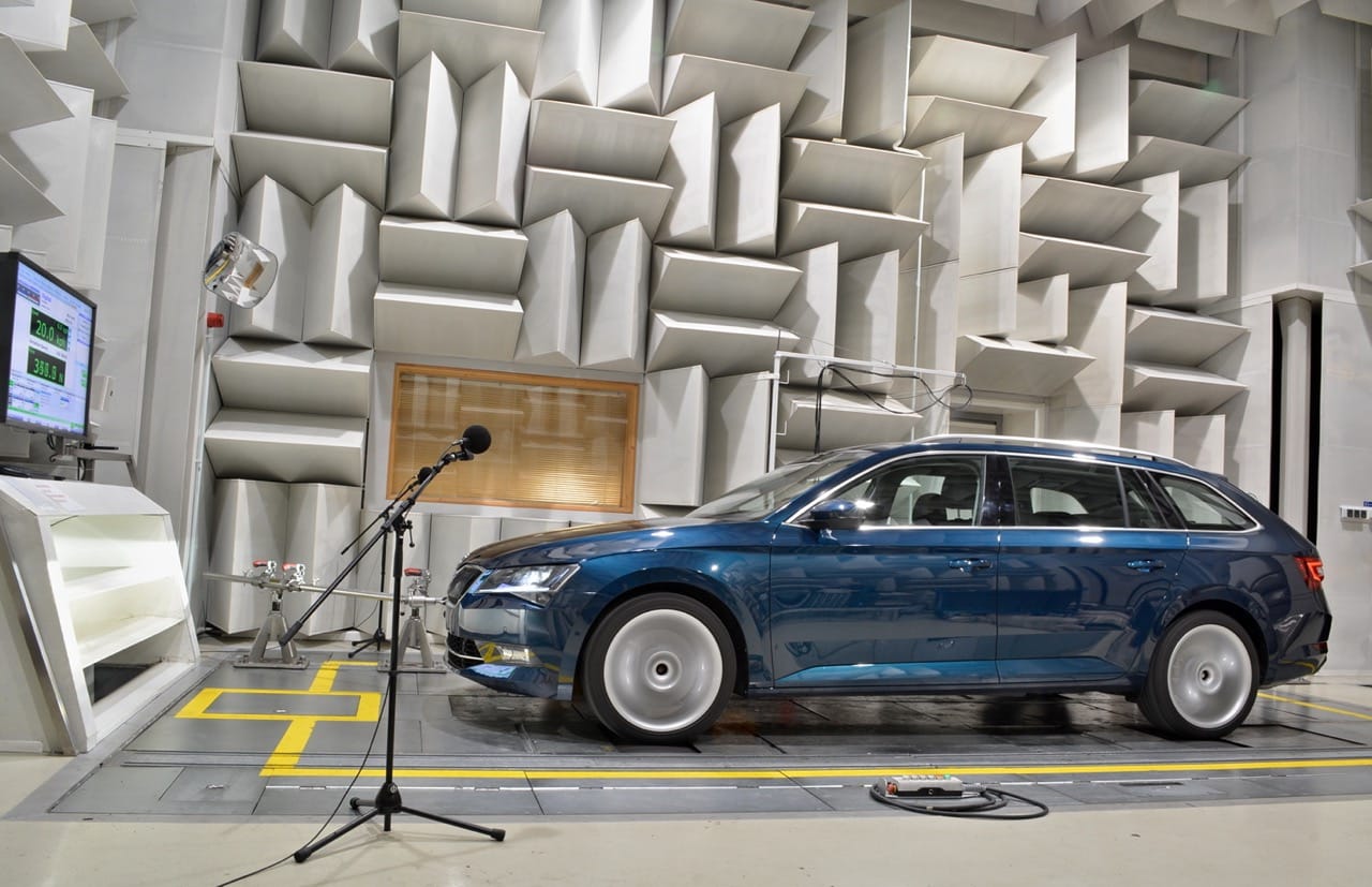Il est vrai qu’au-dessus de 100 km/h le principal bruit dans un habitacle vient de l’écoulement de l’air sur la carrosserie mais les développeurs acoustiques de Skoda ne se centrent pas uniquement sur ce phénomène. En effet, ils travaillent aussi sur les bruits de fonctionnement d’un véhicule, une voiture produit de nombreux autres bruits et il faut également œuvrer pour les réduire.