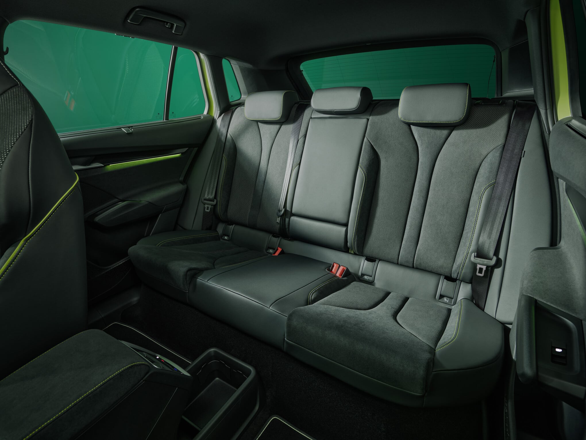 L’ambiance à bord reflète l’orientation dynamique du modèle. Skoda a repensé son Digital Cockpit et l’écran central d’info-divertissement avec des interfaces graphiques exclusives à cette version. Les sièges sport offrent un maintien renforcé et sont rehaussés de surpiqûres contrastantes. L’habitacle conserve un compromis entre confort et sportivité, en intégrant des matériaux de qualité et des équipements modernes.