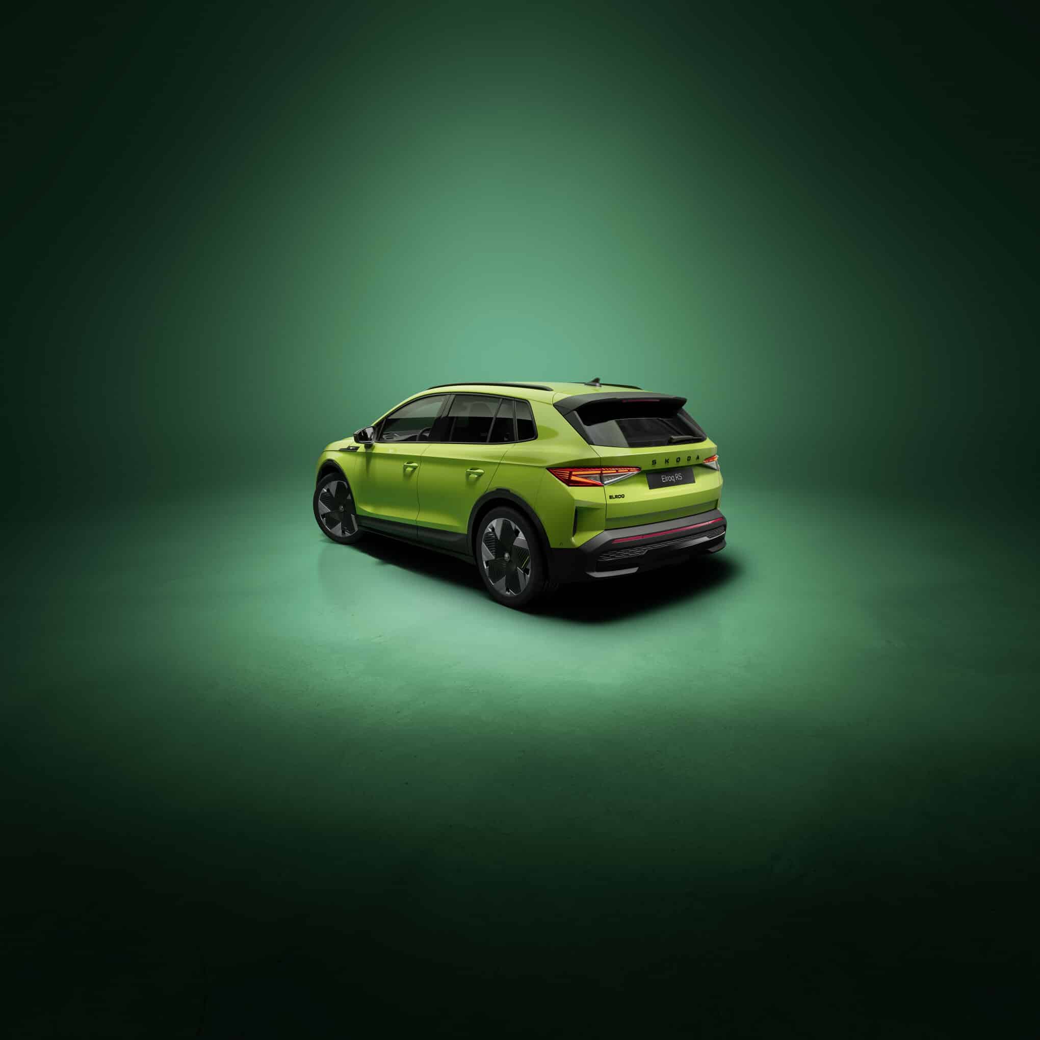 D’autres détails viennent souligner son caractère dynamique, à l’image des éléments noirs glossy qui contrastent avec la peinture de carrosserie, comme les coques de rétroviseurs, les entourages de vitres et le lettrage apposé sur le capot et le hayon. Pour une personnalisation encore plus poussée, l’Elroq RS est disponible dans l’ensemble des teintes de la gamme, mais se distingue par une couleur exclusive : le vert Mamba, réservé aux modèles RS et qui reste saisissante.
