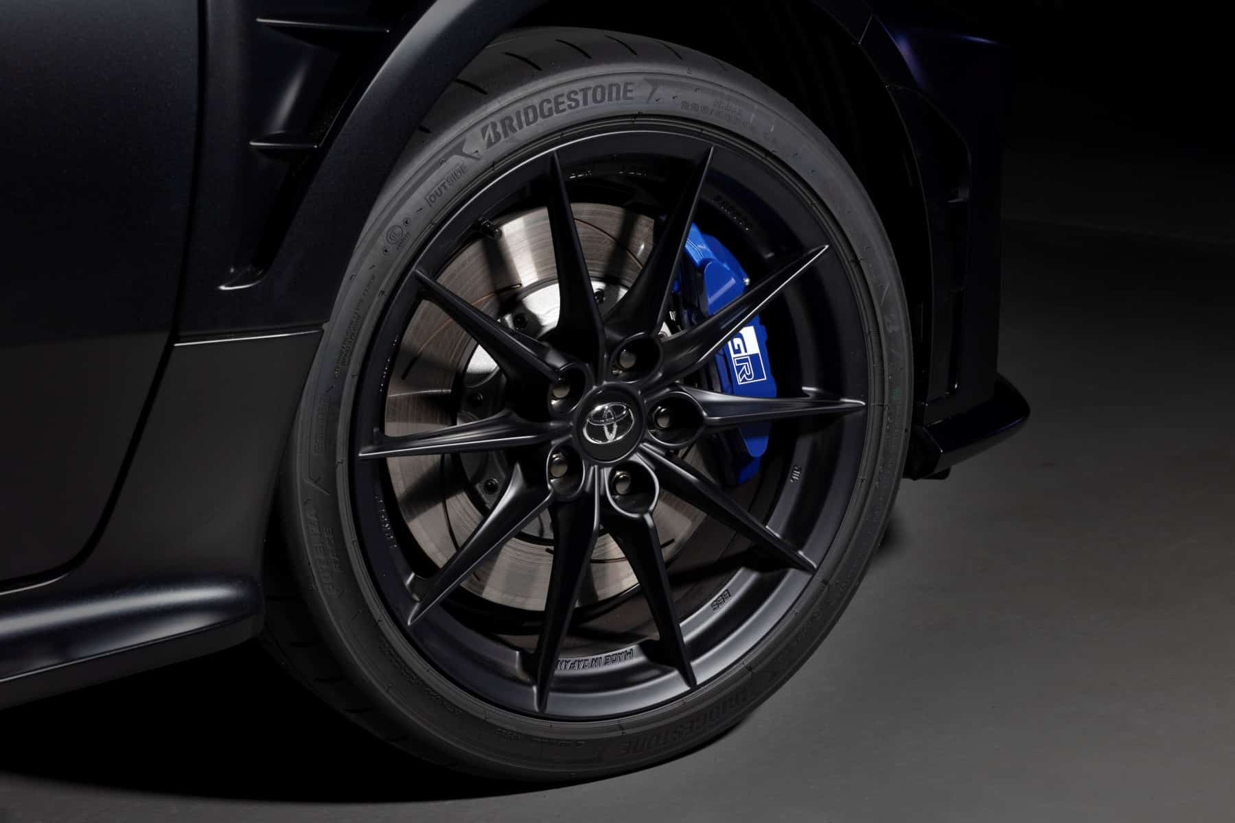 À bord, les surpiqûres bleues et blanches sont toujours présentes, mais on retrouve aussi le nouveau volant inauguré par la Morizo RR. S’ajoutent une plaque « Sébastien Ogier 9x World Champion Edition » ainsi qu’un frein à main vertical, très proche du levier de la boîte de vitesses mécanique, qui donne inévitablement envie de le tirer dans une épingle, en se prenant pour Sébastien Ogier lors du Rallye Monte-Carlo. Concernant la puissance, elle devrait également atteindre 280 chevaux en France, issue du moteur G16E-GTS, et 300 chevaux au Japon. La transmission conserve le mode « Push Seb », avec une répartition de la puissance de 40 % à l’avant et 60 % à l’arrière, ainsi que le mode Morizo RR en 50:50.