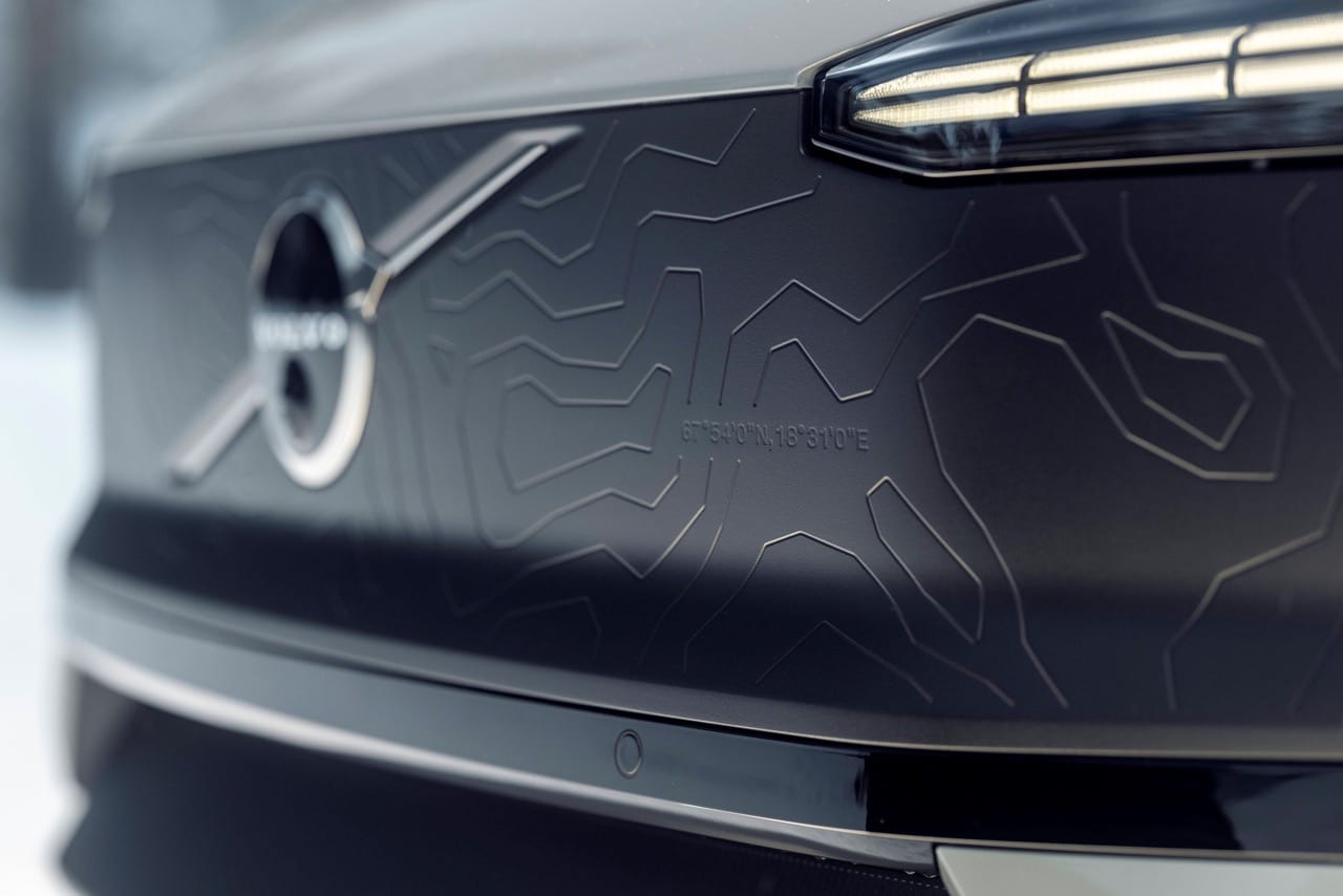 Pour souligner son identité tout-terrain, Volvo a intégré plusieurs éléments distinctifs. À l’avant, le bouclier se pare d’un motif inspiré des reliefs du massif Kebnekaise en Suède, un clin d’œil aux racines nordiques de la marque. À l’arrière, un bandeau noir épuré complète l’ensemble, tandis que le badge Cross Country prend place sur le montant C. Des protections supplémentaires, notamment au niveau des bas de caisse et des passages de roue élargis, viennent renforcer le caractère baroudeur de ce SUV électrique.