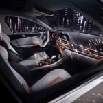 Sa robe de couleur Liquid Metal Bronze met en valeur des lignes plutôt musclées. Les haricots de la calandre sont larges, les optiques sont étirées et le bouclier un peu chargé. Le profil est parcouru par une longue nervure très prononcée passant par les poignées de porte. Les jantes de 20 pouces paraissent démesurées par rapport au reste, même en tant que concept !