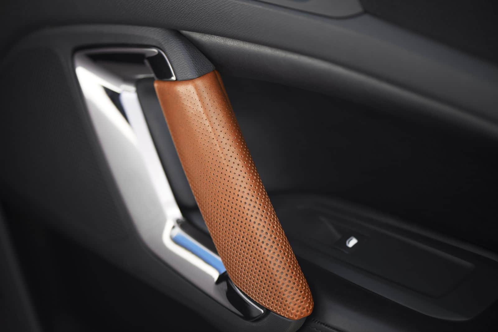 L’habitacle n’est pas oublié. La 308 R HYbrid peut recevoir quatre personnes, calées dans des sièges baquet en cuir fauve patiné. Le ciel de pavillon est de couleur anthracite. Quelques touches de rouge sont présentes (contour des compteurs, repère de centrage du volant, console centrale). La planche de bord est habillée d’un textile obtenu par tissage numérique, un matériaux innovant. En effet, cette technique permet d’avoir des pièces complexes de grande dimension au toucher souple sans utiliser un rembourrage en mousse. Un plus pour réduire le poids. On retrouve bien évidemment la position de conduite atypique de la 308, avec un petit volant et une instrumentation en hauteur, qui permet de ne pas quitter la route des yeux.