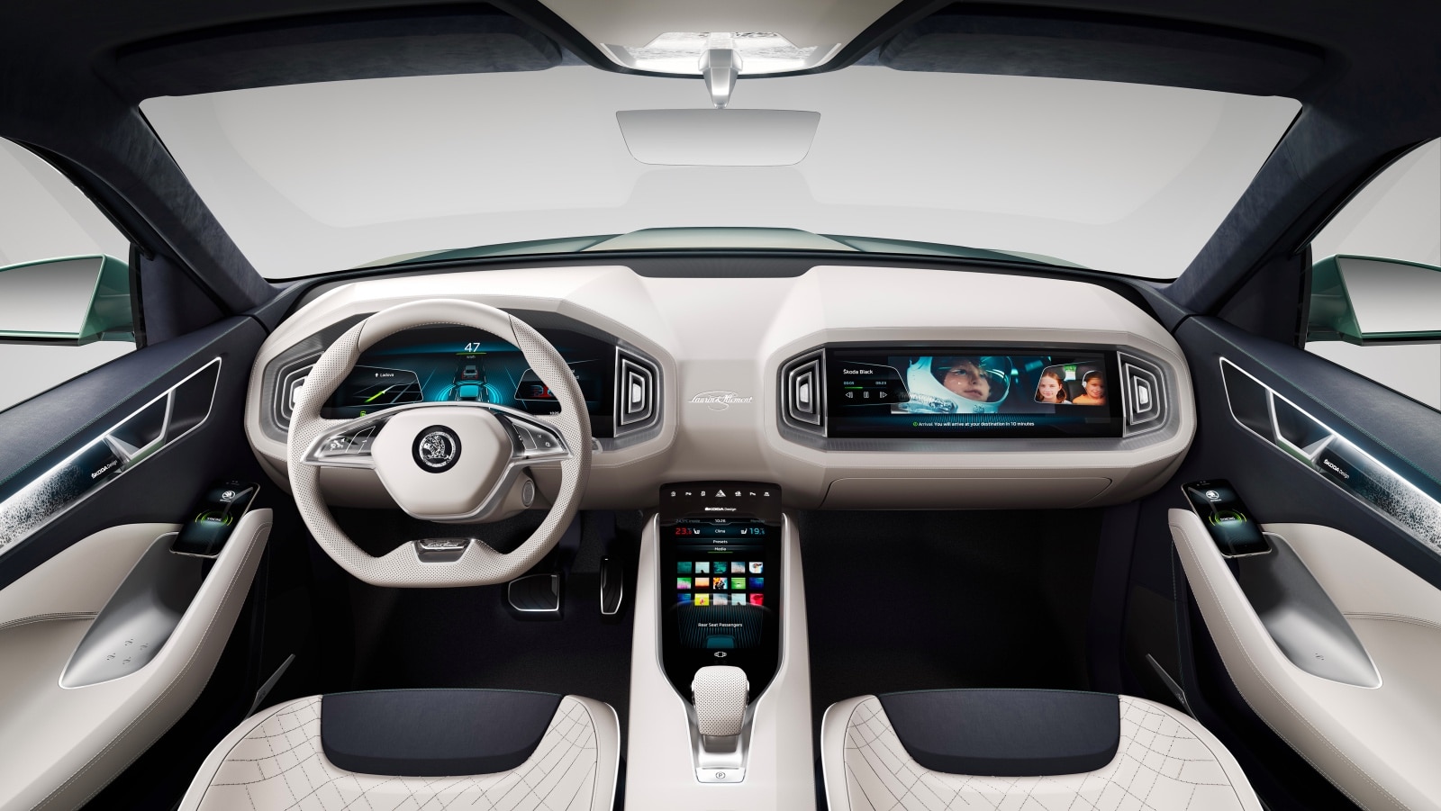 Fait inédit pour une Skoda, ceux-ci sont au nombre de six. C’est la première fois que le tchèque dévoile un véhicule avec trois rangées de fauteuils. Le modèle de série sera plus sage, avec une banquette en rang 2 et des strapontins dans le coffre.