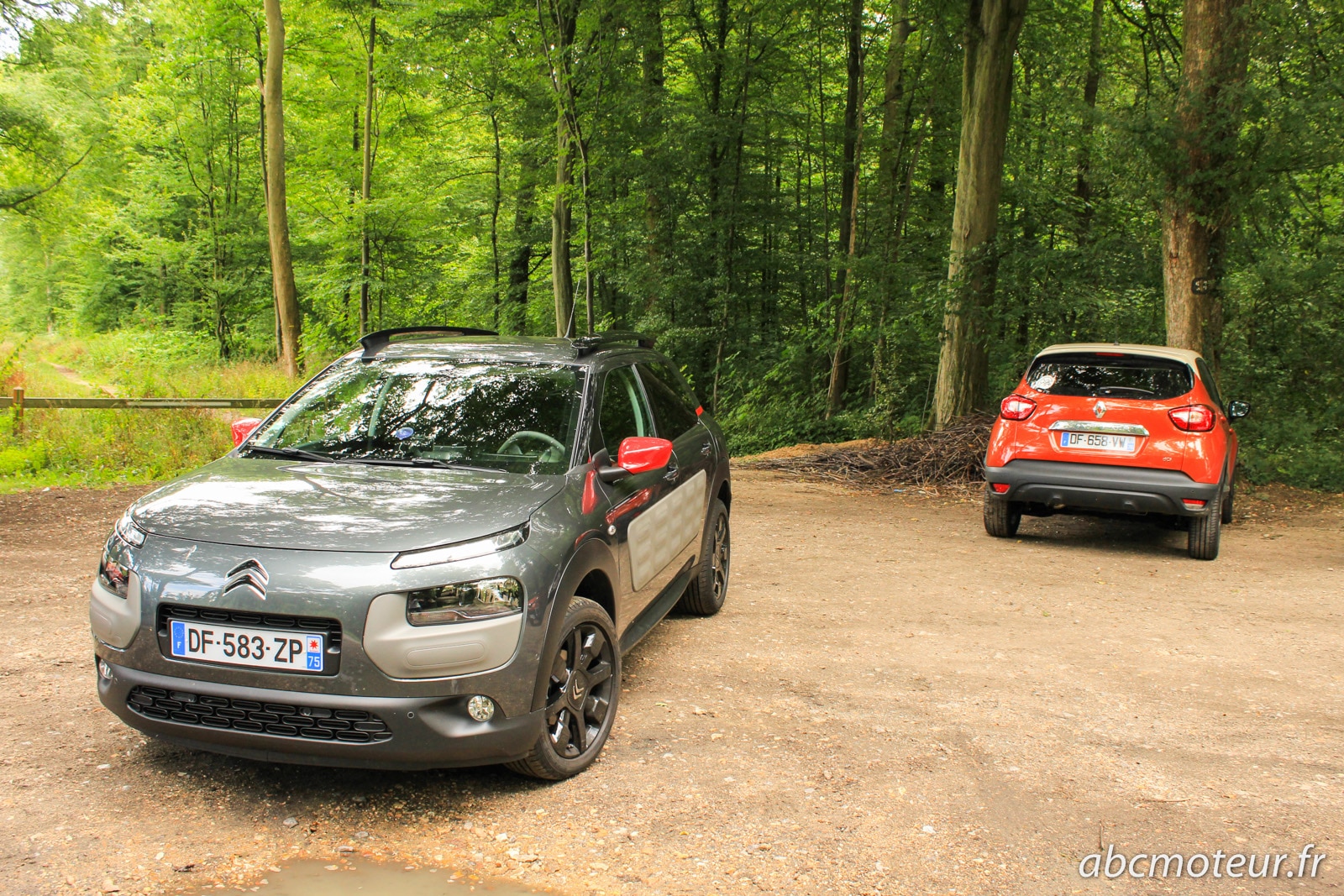 Vue de profil, la voiture présente une carrosserie très douce, lisse et fluide quand les barres de toit renforcent son côté loisirs et les Airbumps son originalité. Le montant C est formé d’un « aileron de requin », élément stylistique fort repris de la DS3 (voir notre essai). Sa longueur de 4,16 m est similaire à ses rivaux que sont les Peugeot 2008 et Renault Captur.