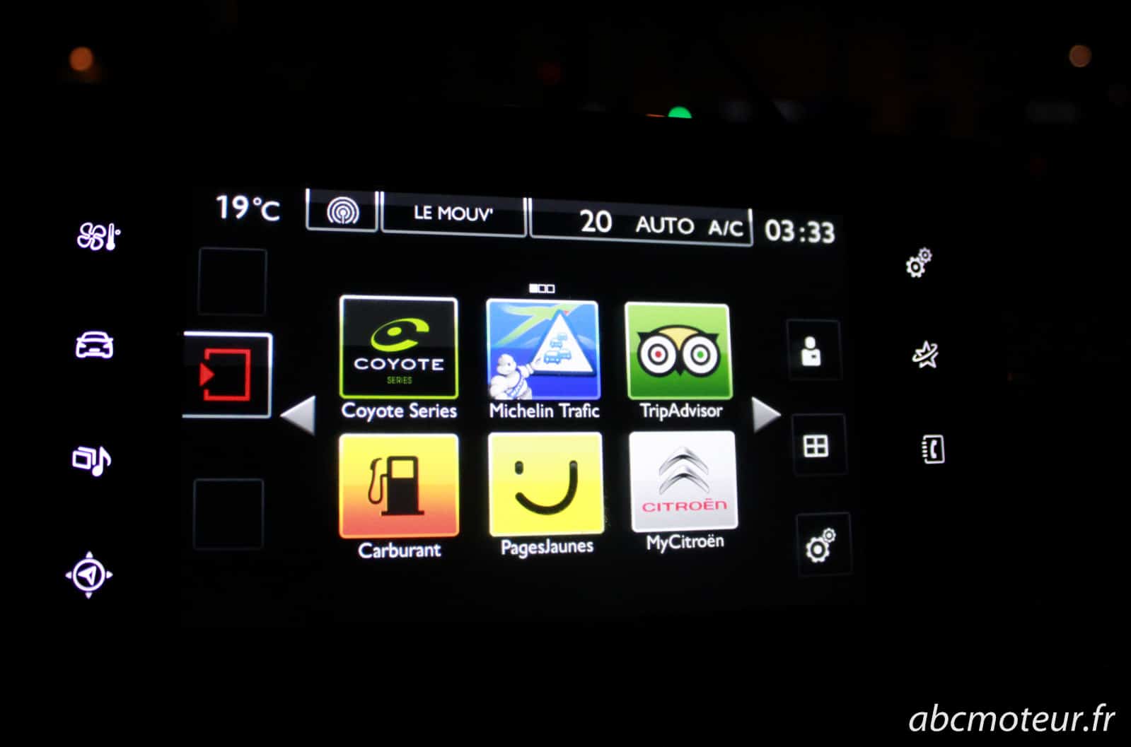 Seuls les bruits d’air et de roulement ne se font pas oublier, bien que sans excès. Nous pesterons toutefois sur l’économie de lève-vitres avant séquentiels, devoir appuyer continuellement sur le bouton au péage est rageant ! L’application Coyote du système multimédia a bien fonctionné, bien que le démarrage de ces applications optionnelles (379 € à l’achat + 140 €/an) demande de la patience !