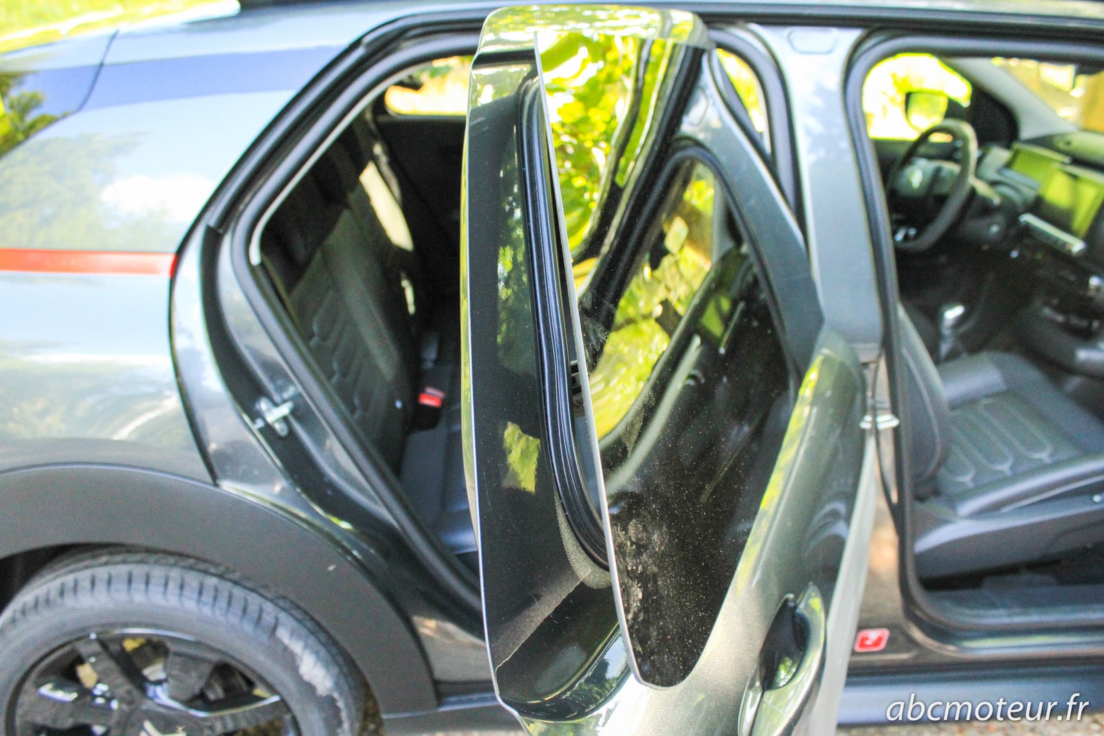 A l’arrière, les passagers seront moins bien lotis. Alors que Citroën a mis le paquet sur la modernité, la gestion des coûts – et du poids ne peut malheureusement pas être oubliée ! Aussi, les vitres sont entrebaillantes et la banquette est monobloc (il faudra choisir entre 3e passager et objet encombrant !).