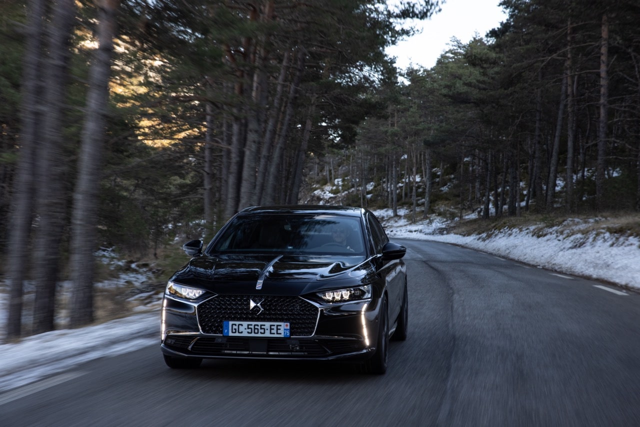 Ainsi, la DS 9 devient dynamique, sur les routes très sinueuses la limite se trouve loin, bluffant pour une auto qui se revendique Grand Tourisme plutôt que sportive. Elle enroule les virages grâce à un châssis neutre et stable. On en vient à oublier que nous sommes dans une berline de presque 5m. La prise en main de son volant en cuir perforé correspond mieux à une conduite dynamique et les sièges offrent un bon maintient. Néanmoins la boîte de vitesses se fait un peu lente quand on lui demande un kickdown et la direction est encore trop assistée en mode sport.