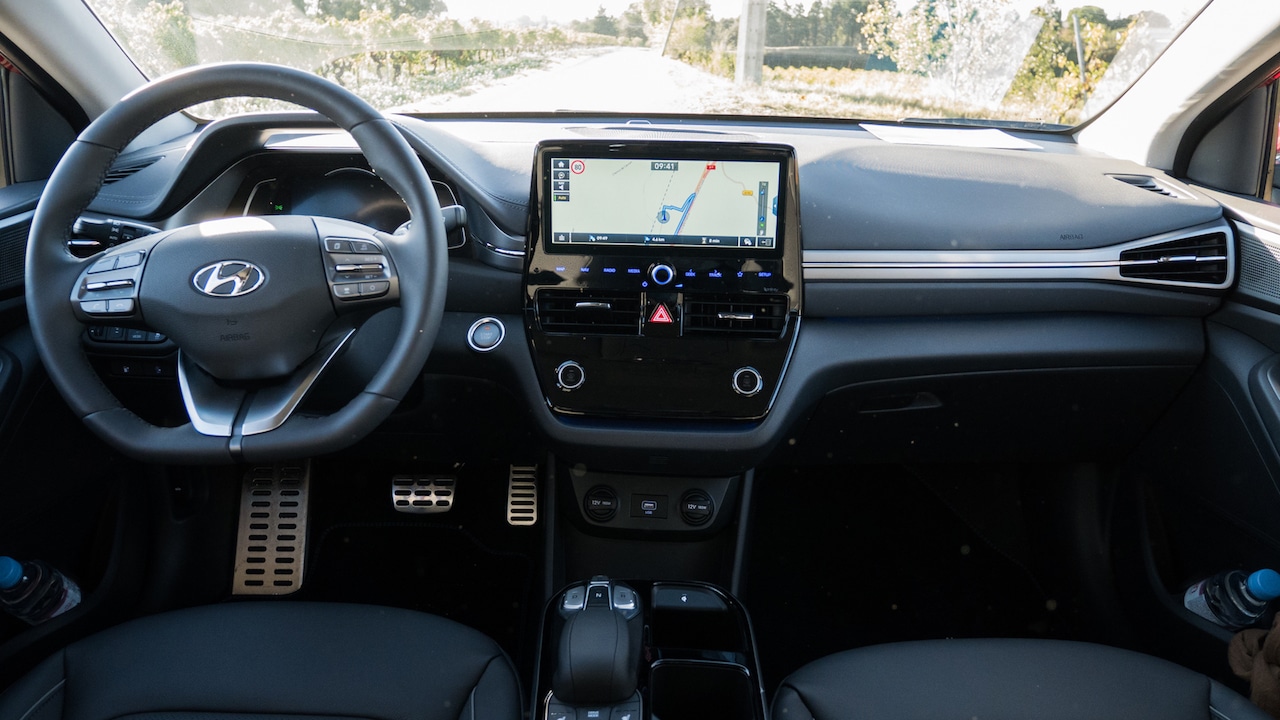 Le gros plus de cette version électrique, et qui manque à la variante hybride alors qu’elle est disponible sur la berline Ioniq hybride, est la gestion du freinage régénératif par les palettes derrière le volant. Quatre modes sont disponibles, de 0 (sans freinage, en mode roue libre classique comme pour une voiture thermique) à 3 (le mode de freinage régénératif le plus fort, qui freine réellement la voiture comme si on appuyait sur le frein). D’ailleurs, cette conduite « à une pédale » nécessite un petit temps d’adaptation, et le dernier mode est souvent un peu trop fort. Le mode 1 ou 2 suffit largement à une utilisation quotidienne. Lorsque le freinage régénératif est en fonctionnement, l’énergie cinétique créée par le mouvement du véhicule est stockée dans les batteries (sous le plancher), ce qui permet de faire remonter une autonomie déjà très correcte de 482 km en cycle WLTP.