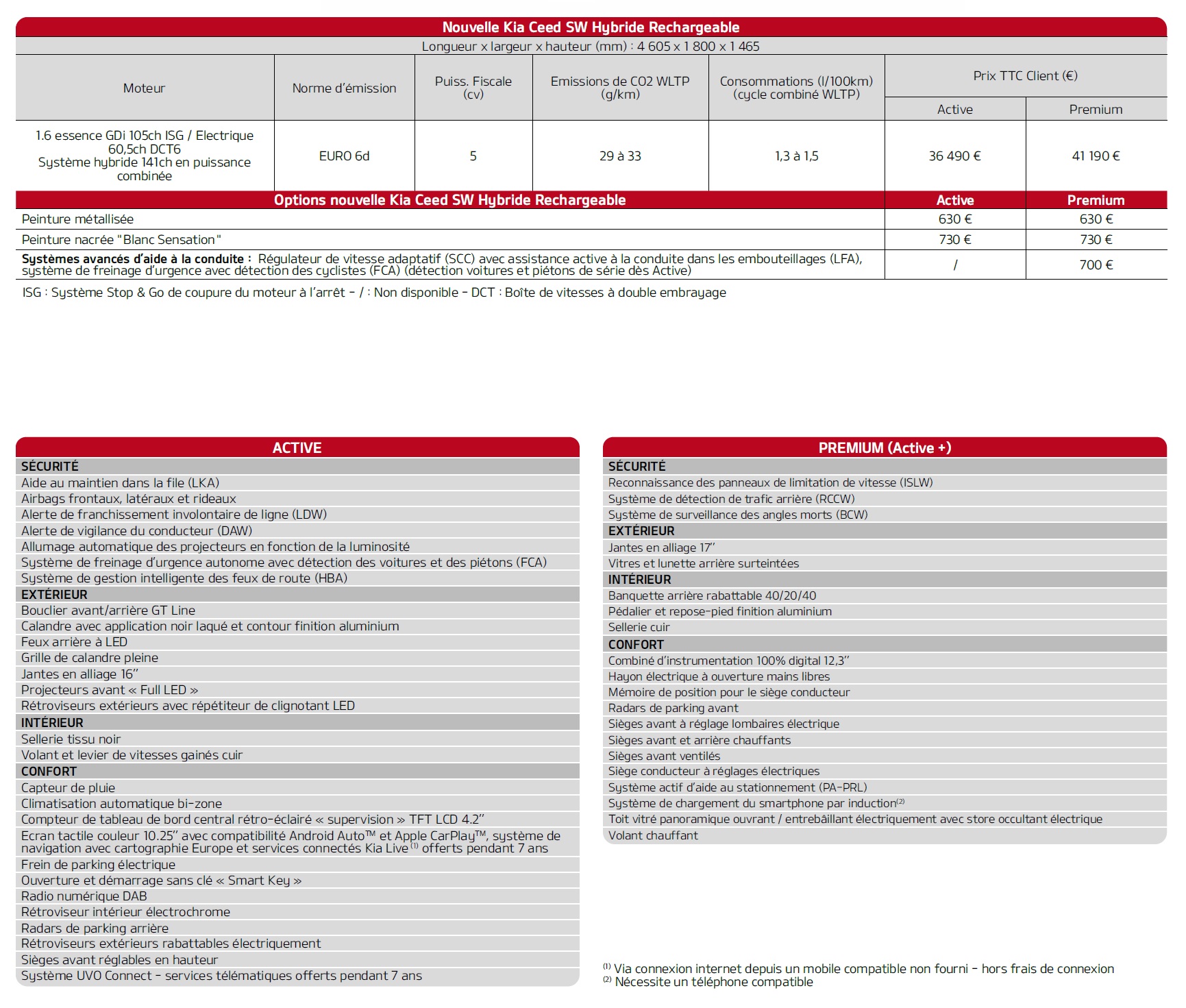 Tarifs et équipements de la Kia Ceed SW hybride rechargeable