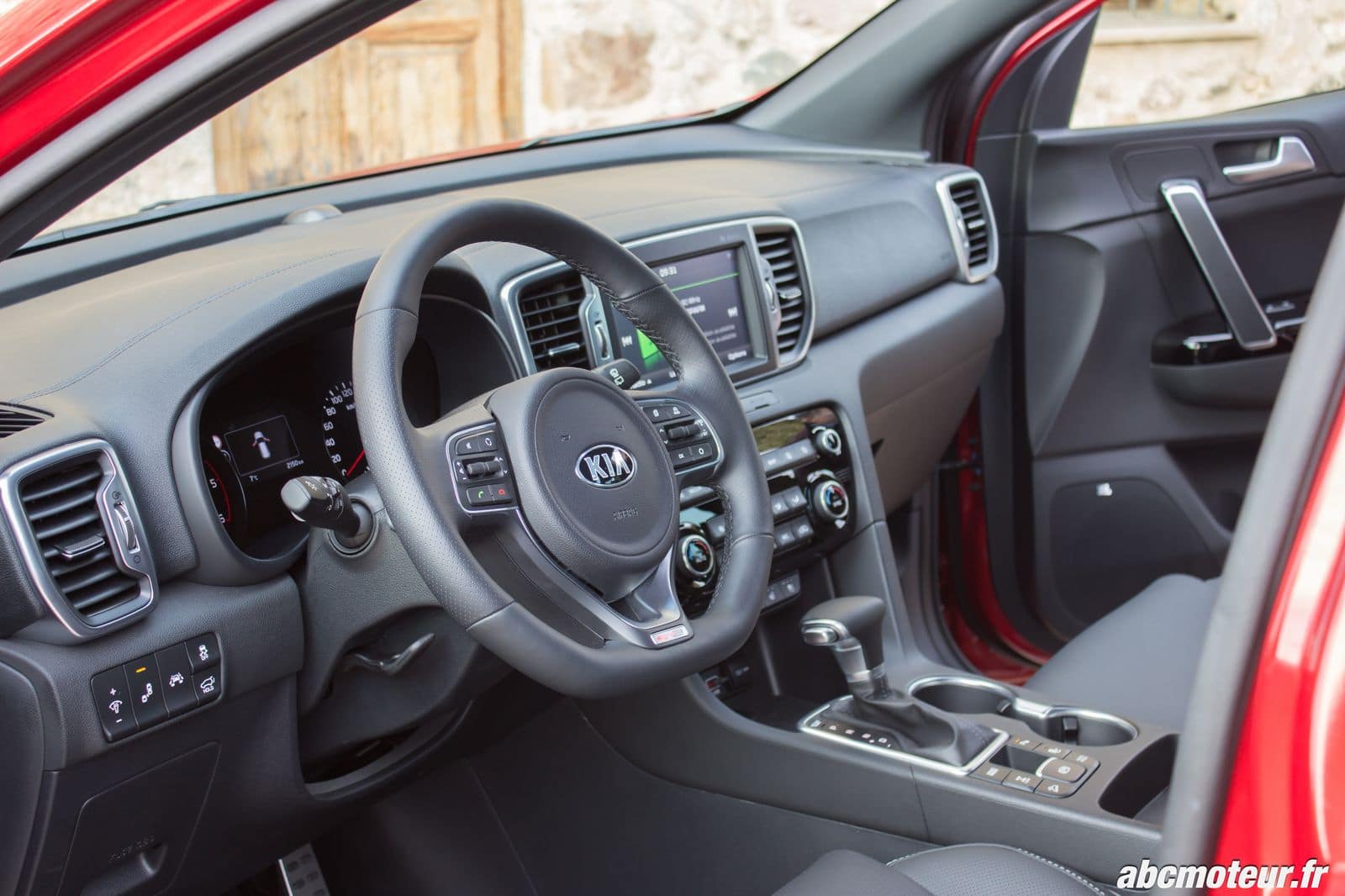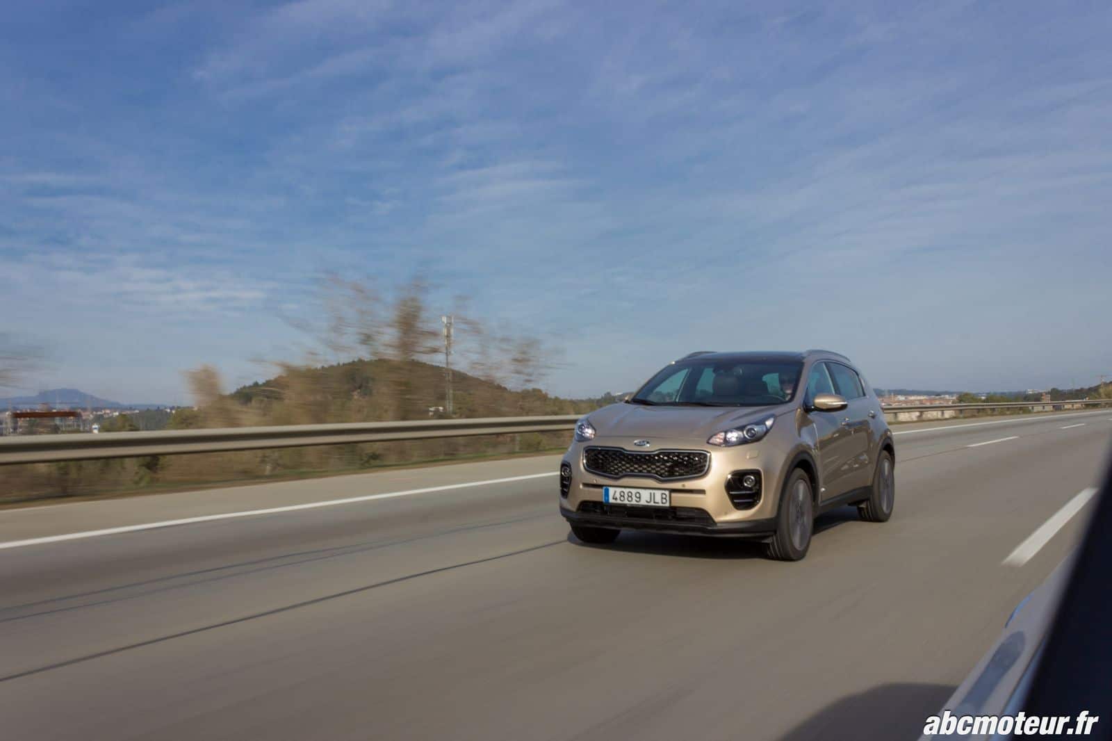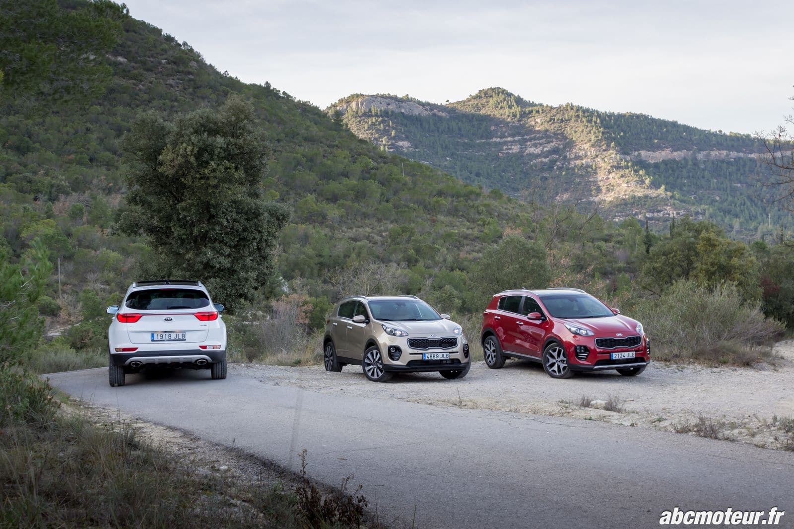 Kia ayant peaufiné son événement, les essayeurs avaient la possibilité de prendre le volant de toutes les motorisations disponibles au catalogue. Elles sont au nombre de cinq : deux essence, 1.6 GDi 132 chevaux et 1.6 turbo T-GDi 177 chevaux, et trois diesel, 1.7 CRDi 115 chevaux, 2.0 CRDi 136 chevaux et 2.0 CRDi 185 chevaux. Une transmission intégrale non permanente (on peut bloquer le différentiel central via un bouton dans l’habitacle) est proposée d’office avec les deux plus gros moteurs et figure au rang des options pour le diesel 136 chevaux. Greffé des motorisations d’entrée de gamme, le Sportage reste une simple traction.