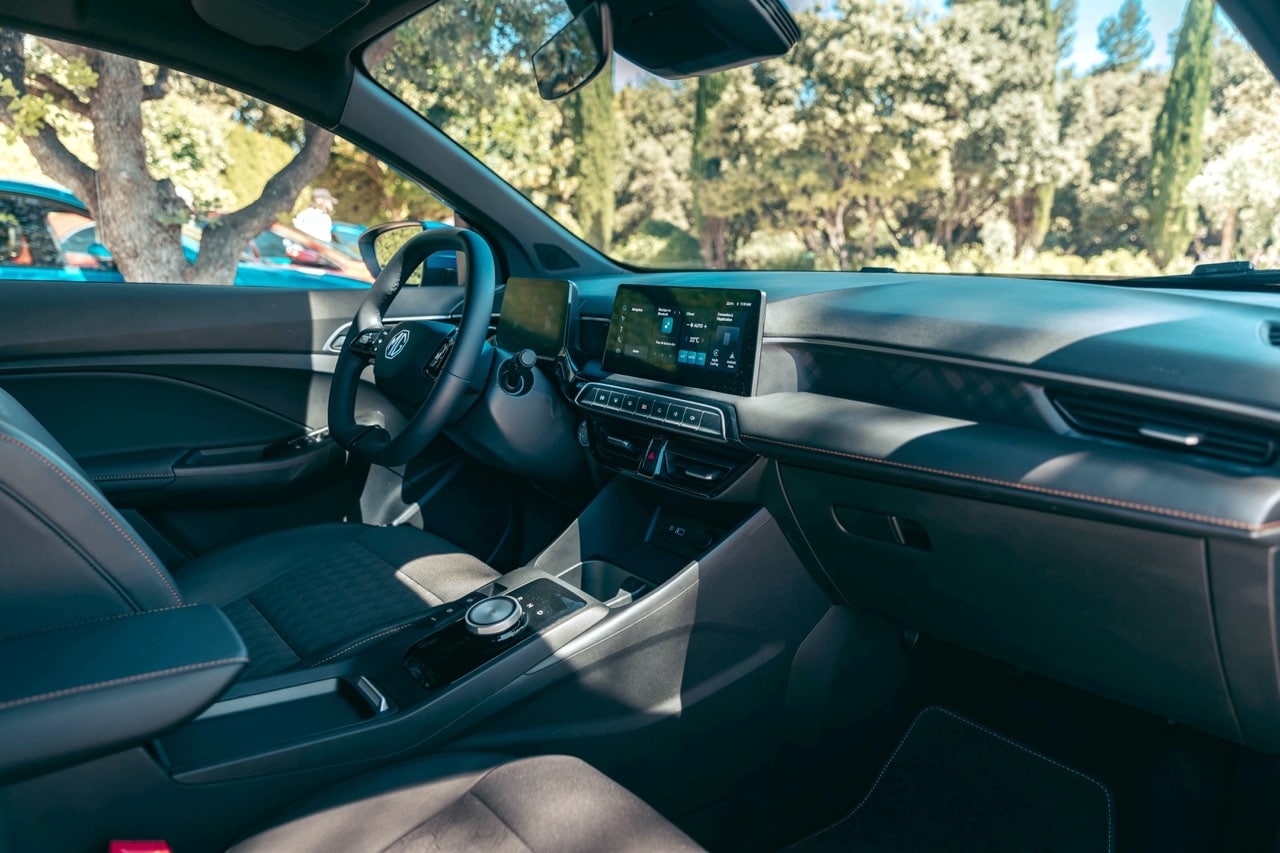 Le style extérieur de la MG3 Hybrid + est assez simple, et forcément, on s’attend à ce que le poste de conduite suive la même logique. C’est sans surprise le cas, puisque l’intérieur de la citadine se veut très sobre, sans pour autant être dépouillé comme le serait celui d’une Tesla par exemple. Ainsi, la voiture fait la part belle à la fonctionnalité et ne s’embarrasse pas de la moindre futilité. Et à vrai dire, ce n’est pas bien étonnant, surtout au vu du prix de cette nouvelle venue, et forcément, il ne faut donc pas s’attendre à plus. Mais la voiture ne fait pas pâle figure par rapport à ses rivales, bien au contraire, et elle risque même de leur faire voir rouge. Car si les matériaux ne sont pas forcément les plus haut de gamme et que les plastiques durs sont très présents, les finitions sont quant à elles très correctes.