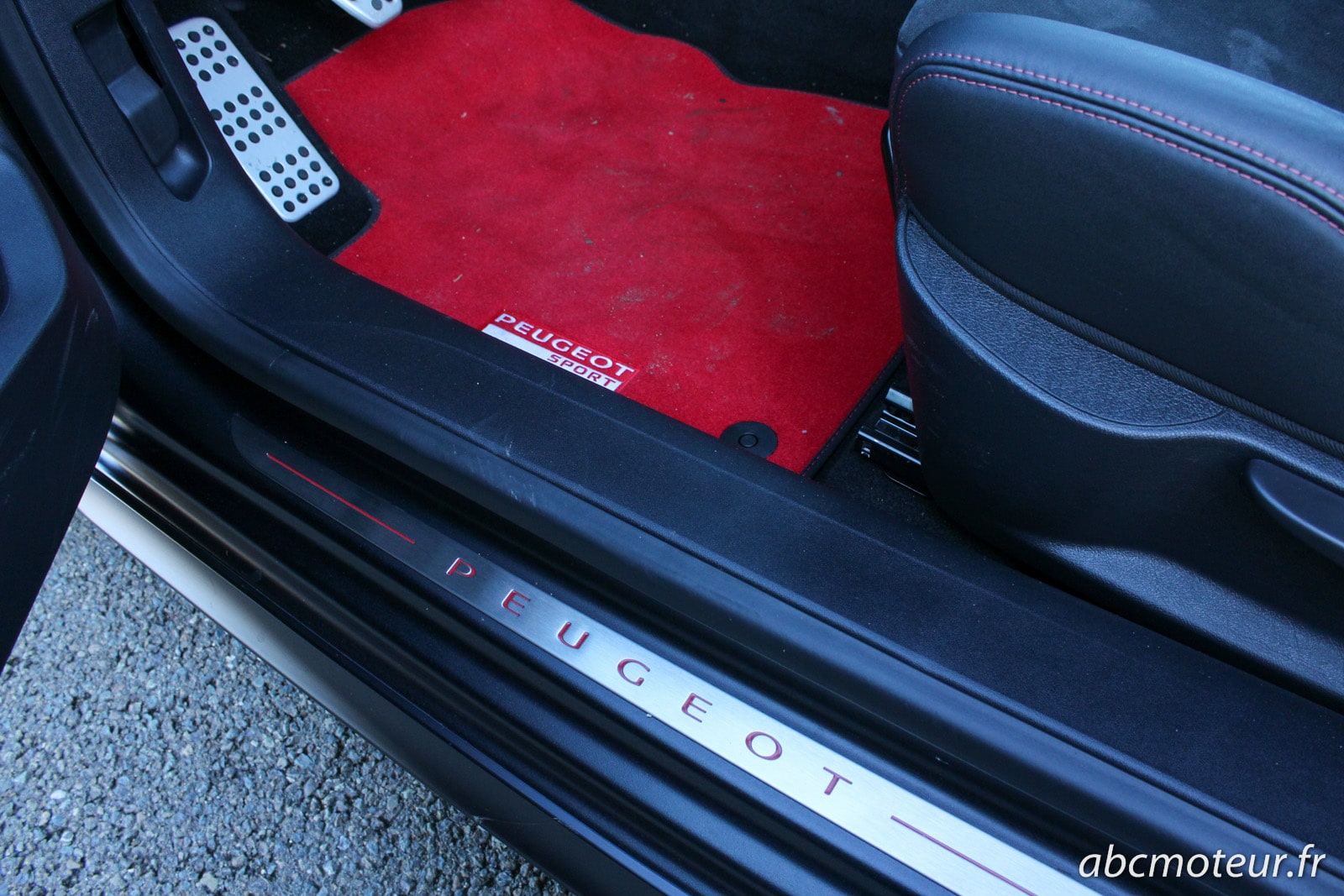 Peugeot a sinon eu la bonne idée d’abandonner sur cette version le plutôt clinquant dégradé rouge et noir brillant des aérateurs et poignées intérieurs pour un noir brillant traversé d’une fine rayure rouge.
