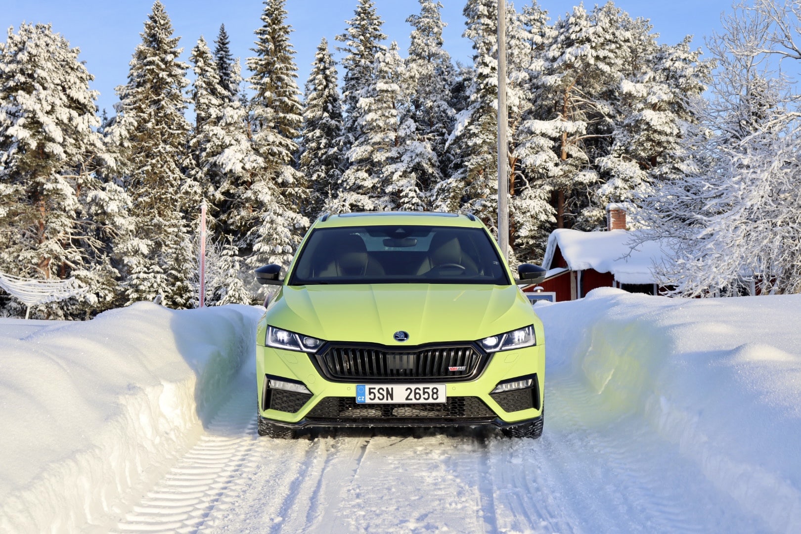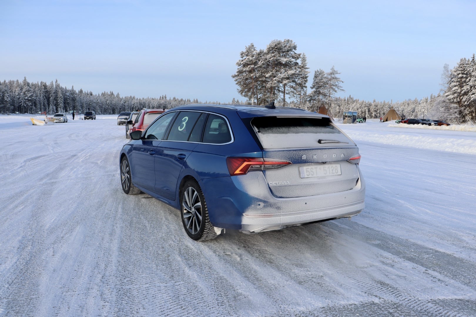 Enfin, j’ai pu conduire cette Octavia Combi sur la glace toujours en 4 roues motrices et avec les Nokian Hakkapeliitta. Ça n’a rien d’une patinoire car il est possible de rouler jusqu’à 50 km/h sans sentir de véritable perte d’adhérence à condition d’être doux avec les commandes. Et pour ceux qui souhaiteraient s’amuser à glisser, il est possible de couper l’antipatinage (ASR) et de passer en ESC Sport (ESP). Le comportement en glisse est très sain et au bout de quelques tours de circuit de glace on se retrouve à regarder la piste par la fenêtre latérale même sans expérience.