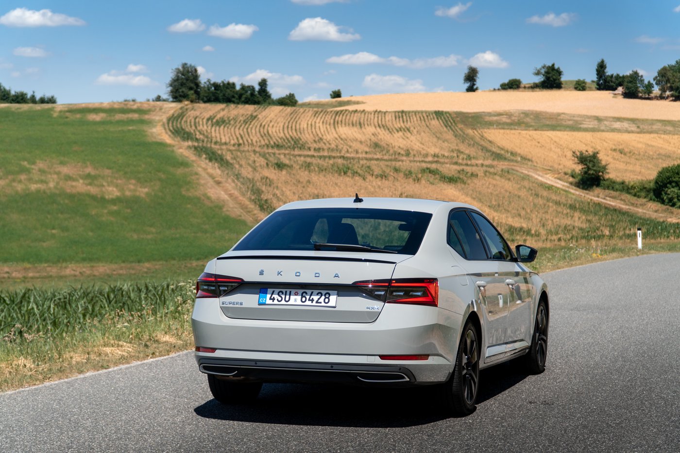 Deux petits défauts qui sont toutefois négligeables face aux qualités du châssis de la Superb. Les deux modèles essayés étaient équipés de la suspension pilotée optionnelle DCC qui propose différentes lois d’amortissement. En Confort, la Skoda étonne vraiment par sa très bonne filtration des aspérités de la chaussée, qui sont gommés avec brio. Revers de la médaille, quelques ondulations sont clairement perceptibles dans l’habitacle, et bien qu’elles ne soient pas envahissantes, cela ne plaira pas à tout le monde. En Sport c’est l’inverse : les mouvements de caisses sont bien mieux endigués et l’état de la route se ressent plus, sans que l’amortissement ne devienne cassant. Le mode Normal offre pour sa part un bon compromis entre les deux autres susmentionnés. La Superb est rassurante et neutre en toute circonstance, les amorces de sous-virage sont progressives et l’arrière rivé au sol ne bouge que si on le chahute vraiment. Le tout avec une agilité correcte dans le sinueux, mais pas exceptionnelle pour la catégorie. C’est tout ce que l’on attend d’une familiale dédiée aux longues distance.
