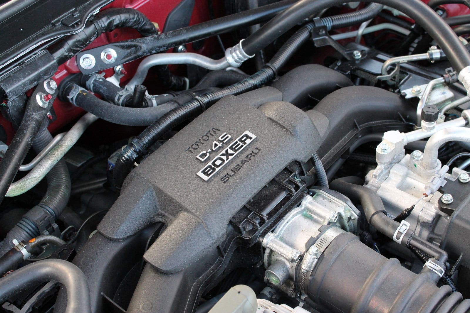 Le bloc moteur où repose le fameux moteur à plat Subaru – permettant notamment d’abaisser le centre de gravité – retouché par Toyota et doté d’une injection Lexus. Il gagne en sobriété grâce à ces modifications