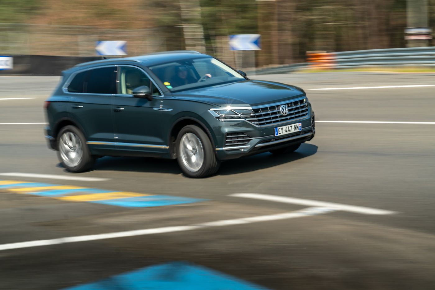 Non seulement cette dernière permet de faire varier la hauteur de caisse de plusieurs centimètres pour évoluer en offroad sans arrière pensées, mais elle procure surtout un confort absolument royal quel que soit l’état de la route. Mon Touareg avait des jantes de 20 pouces en lieu et place des 19 de série ? Qu’importe, toutes les imperfections sont filtrées avec brio et l’effet tapis volant est un délice sur long trajet. Avec la suspension pneumatique, les roues arrières deviennent aussi directrices. Un bonus non négligeable sur un SUV de plus de 2 tonnes dont l’empattement atteint 2,9 mètres. L’artifice ne rend pas le Touareg sportif, puisqu’il y a des mouvements de caisse dans tous les sens dès qu’on hausse le rythme : le gros Volkswagen se cabre à l’accélération, plonge au freinage et le roulis est nettement perceptible en courbe. En revanche, l’agilité dont il fait preuve est totalement déroutante pour un tel gabarit et il est possible de passer bien plus fort que de raison en virage.