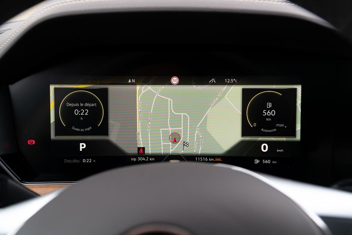 La boulimie technologique du Touareg profite aussi aux aides à la conduite, parmi lesquelles on trouve l’affichage tête haute, la conduite semi autonome, l’avertisseur d’angle mort, la vision de nuit… L’auto pousse même le vice jusqu’à faire vibrer la pédale d’accélérateur à l’approche d’une zone où la vitesse est inférieure à votre allure du moment ! Une armada électronique qui invite plus à la conduite tranquille qu’autre chose, tout comme la très bonne suspension pneumatique optionnelle (3 060 €) qui équipait ma monture.