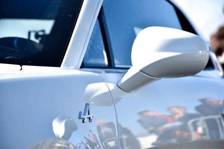 Personnellement j’ai toujours beaucoup aimé les traits de cette A110, dès son dévoilement. Nous l’avions d’ailleurs souligné lors de son élection de Plus Belle Voiture de l’Année. Le rappel de la berlinette d’antan est réussi tout en conférant à la silhouette une ligne moderne et attirante. C’est parée de sa robe blanche que nous attend notre Alpine dans les stands du circuit Maison Blanche. Je trouve qu’elle perd un peu de sa personnalité par rapport au superbe bleu ou même au noir ; je ne boude néanmoins pas mon plaisir…