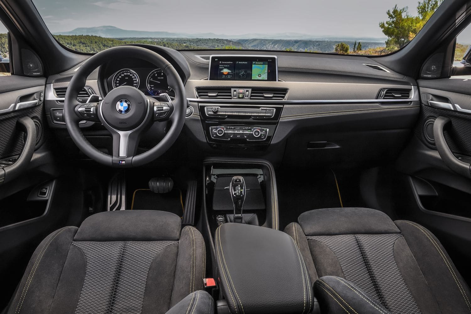La planche de bord a une impression de déjà-vu. Normal, c’est celle du X1, à peine retouchée (quelques surpiqûres en plus). Surtout, elle reprend un style trop vu chez BMW. Dommage, on aurait aimé un peu de fraîcheur dans ce modèle au positionnement plus fun. Reprenant la même base que le X1, le X2 proposera un espace aux jambes et aux épaules similaires. En revanche, la garde au toit perd quelques centimètres. Le coffre aussi est réduit, mais conserve tout de même 470 litres, ce qui n’est pas si mal pour une compacte. On profitera de plus d’espace de chargement en rabattant la banquette selon le format 40/20/40.