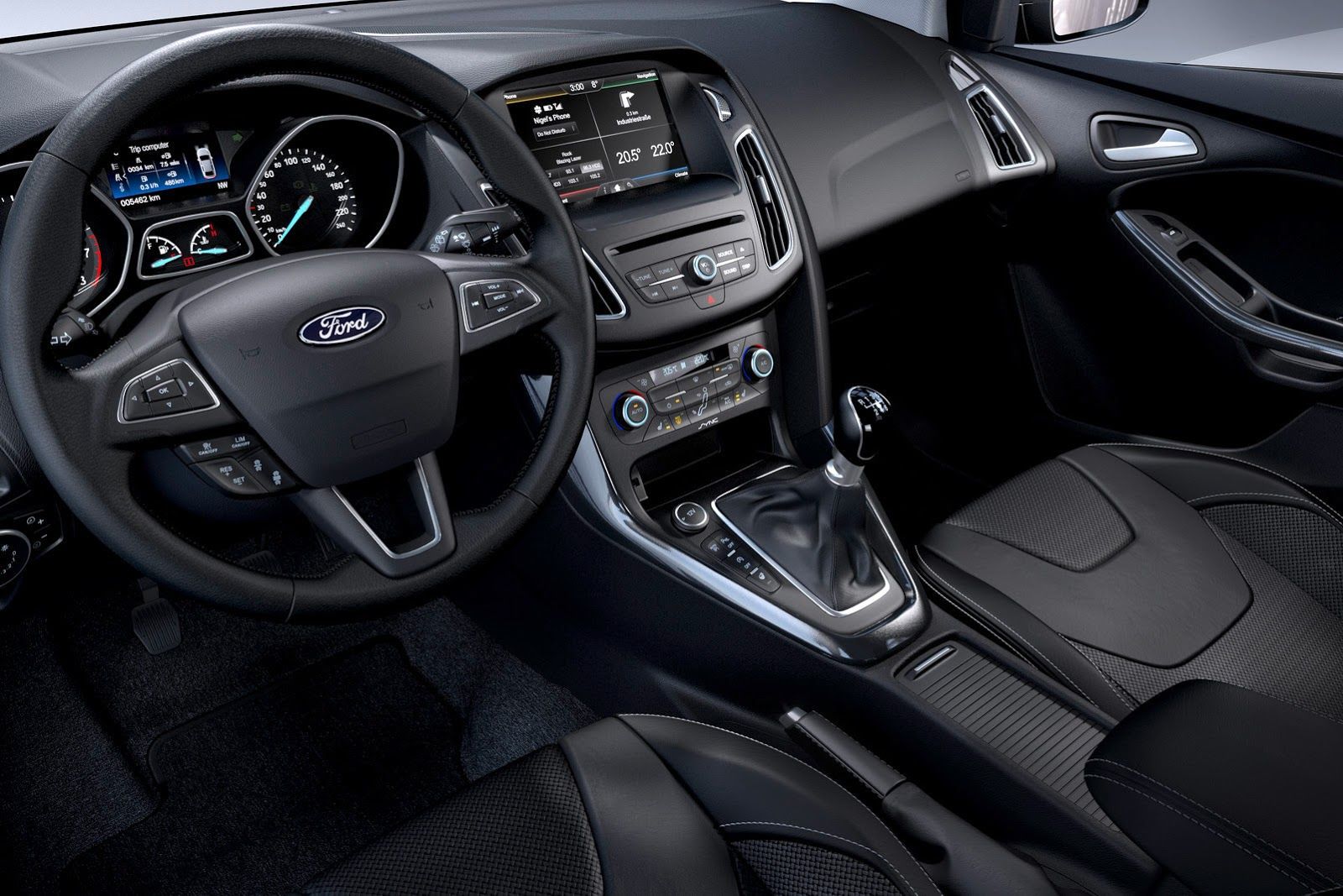 L’intérieur est également visé par ce restyling, puisque la console centrale voit son ergonomie améliorée avec un diminution du nombre de boutons. Un écran multimédia tactile (8 pouces) de plus grande taille intégrant le système de connectivité SYNC 2 avec notamment des commandes vocales plus évoluées est présent. Le volant multifonction – qui perd deux branches au passage – en profite aussi pour éliminer quelques touches qui rendait son maniement trop compliqué. De plus, un nouvel accoudoir central fait son entrée et un espace supplémentaire est alloué au pied de la console centrale afin d’y placer plus facilement des bouteilles ou gobelets. Par ailleurs, la marque promet une meilleure insonorisation de l’habitacle avec des moquettes et vitres plus épaisses.