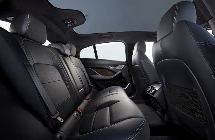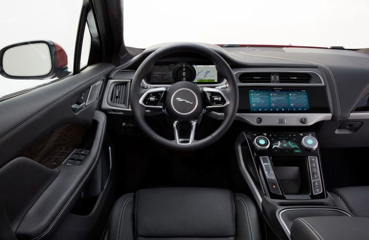 La présentation intérieure tente de faire la synthèse entre sportivité et technologie. Jaguar multiplie les écrans : en plus de ceux de l’instrumentation et du système multimédia, il y en a un au-niveau des commandes de clim, placé sur une sorte d’arche. L’I-Pace profite de son empattement généreux pour proposer, selon Jaguar, une habitabilité digne de la catégorie supérieure. Le volume de coffre est aussi généreux, avec plus de 650 litres.