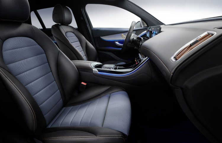 Dans l’habitacle, constat similaire : l’EQC ne cherche pas à faire dans le futuriste. La présentation est semblable à ce que l’on voit dans les autres Mercedes, d’ailleurs la base de la console centrale est reprise au GLC. On retrouve deux écrans en enfilade. Les différences se trouvent dans le dessin des aérateurs, anguleux et non plus ronds, et au-dessus de la planche de bord, qui a un aspect plus dégagé vers le pare-brise, et se prolonge bien dans les portes. Mauvaise surprise à l’arrière : le passager du centre est gêné par un tunnel de transmission, inutile sur ce modèle. Mais c’est parce que la base est celle du GLC, encore. Le coffre annonce un volume de 500 litres.