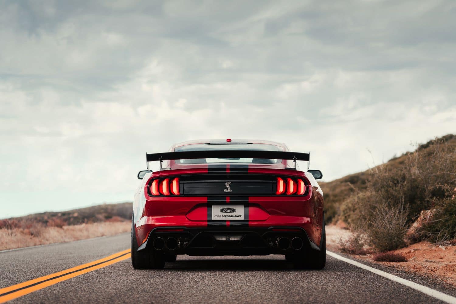 Le moteur de départ est le même, à savoir un V8 5.2 litres. Mais il est revu en profondeur, avec notamment un compresseur, pour atteindre plus de 700 ch. C’est quasiment la puissance d’une Ferrari 488 Pista. Surtout, c’est la Ford de série la plus puissante de l’histoire (faisant ainsi mieux que la dernière GT). On note que c’est presque raisonnable, Dodge ayant osé une Challenger de 840 ch ! Le bloc est associé à une boîte double embrayage 7 rapports, inédite sur ce modèle, avec des vitesses passées en moins de 100 millisecondes. Toute la puissance est envoyée aux seules roues arrière. Le 0 à 100 km/h est réalisé en 3,5 secondes environ. Pour ne pas partir dans le décor, le freinage est adapté, avec un système signé Brembo.