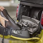 Comme sa devancière, la nouvelle Fortwo Cabrio adopte une capote en toile qui englobe la lunette arrière en verre. L’ensemble se rabat au-dessus de la malle… avec comme conséquence une rétrovision quasi nulle. Il est possible de la préserver tout en profitant des rayons du soleil en repliant uniquement la partie au-dessus de la tête.