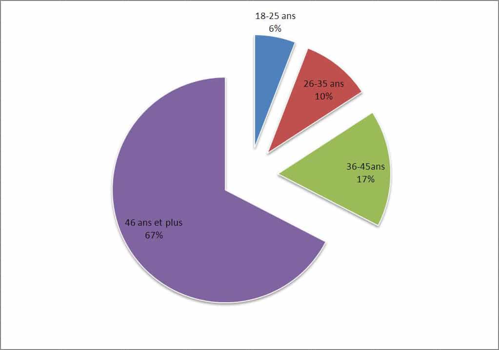 Pour les 3 299 questionnaires remplis, ce sont à 78 % des hommes qui ont répondu, les sondés vivent à 52 % en ville et 67 % d’entre eux ont 46 ans et plus.