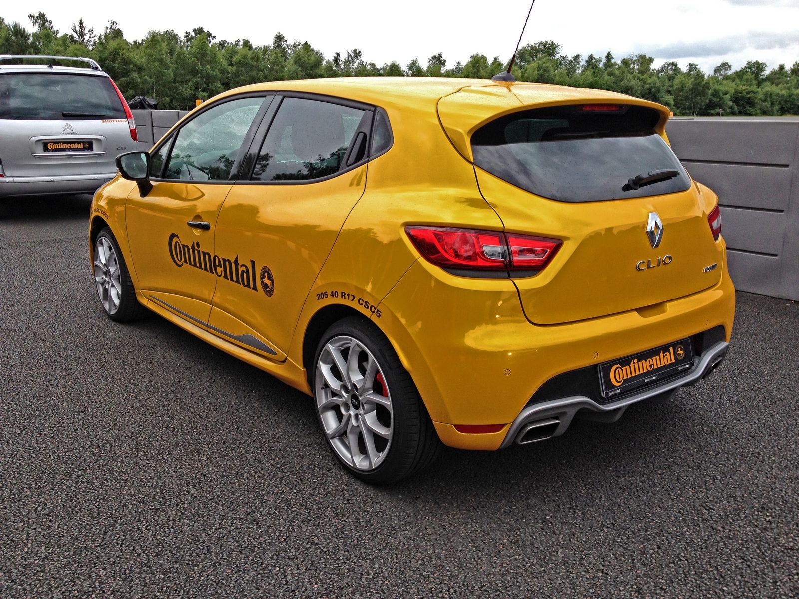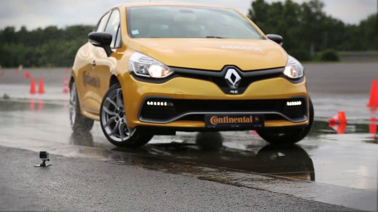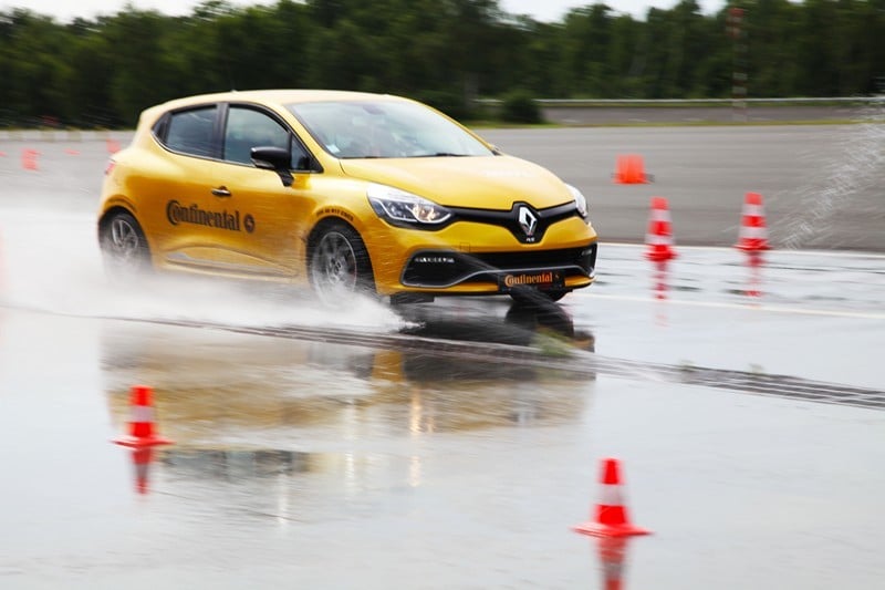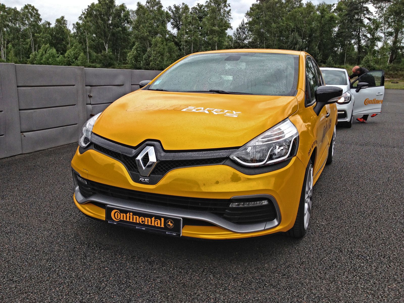 Impossible de passer à côté de cet atelier. C’est l’occasion de tester le comportement sur le mouillé, lors d’un évitement et nos réflexes. Nous utilisons une Renault Clio 4 RS montée en Continental ContiSportContact 5.